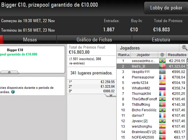 Já Pedro "whitequality" Olaio, jogador que brilhou no dia anterior nas mesas .com, garantiu um título nos torneios regulares desta sexta. O português foi o melhor entre um field de 159 entradas no Eliminator €100 e engordou a banca com €3.548.