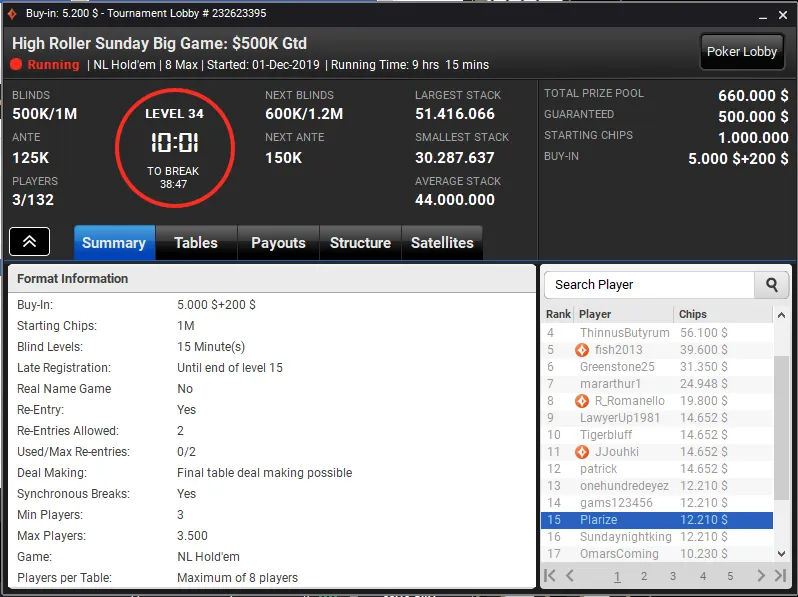 Já Pedro "pm_marke" Marques, está muito perto de garantir a terceira mesa final para Portugal na série. O grinder luso avançou com a segunda maior stack para o Dia 2 do High Roller 01: $10.300 NLHE [8-Max].