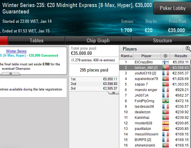 | 23:00 | Winter Series-247: €20 Midnight Express [8-Max, Hyper] | €35.000 |