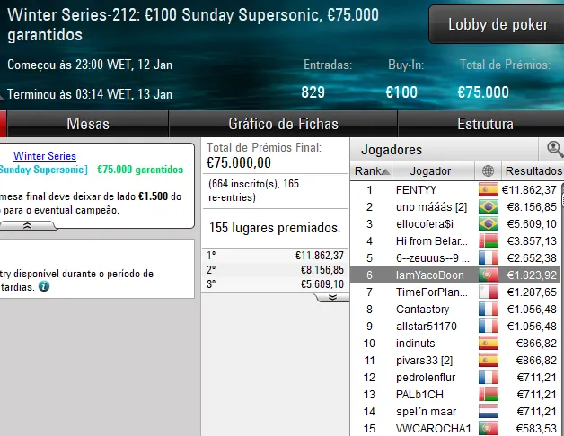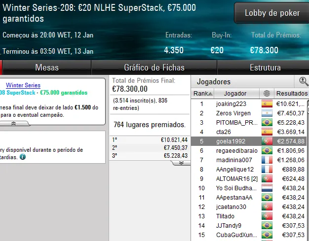 Quem também venceu no festival para encaixar um prémio de cinco dígitos foi o grinder Cigas27. O português bateu um field de 2.919 no Winter Series-202: €30 NLHE [Deep] e subiu ao topo do pódio para receber os €10.865 reservados para o campeão.