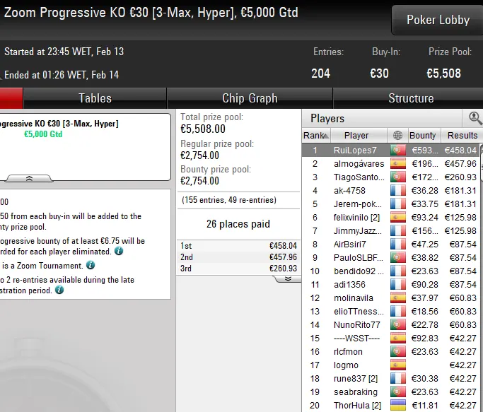 Nuno "garradominador" Rocha subiu ao pódio do Super Thursday Night on Stars PKO €250 da PokerStars.pt e foi o português que mais faturou na sessão online desta quinta-feira.