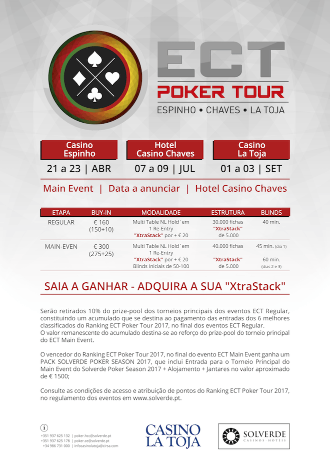 Hugo Felix, em middle position, fez raise para 19000 fichas. A ação rodou em fold até Miguel Ferreira, na big blind, que fez re-raise all-in para cerca de 65000. Felix fez insta-call e foram viradas as cartas.