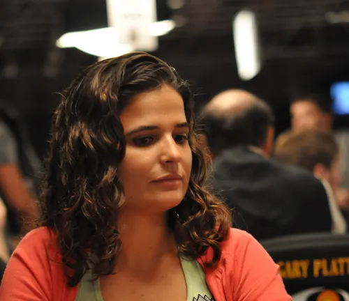 Catarina "Katrina" Santos, under the gun, fez raise para 1,500 e, na small blind, um jogador fez all-in. Katrina fez call e virou