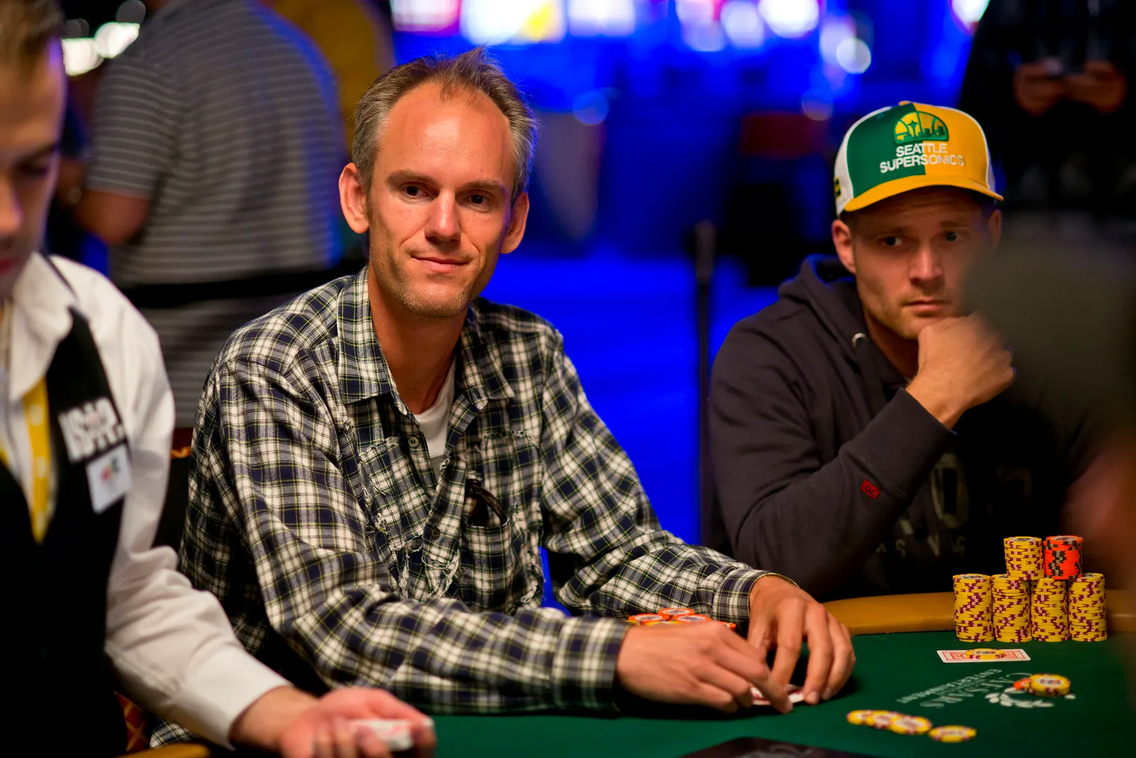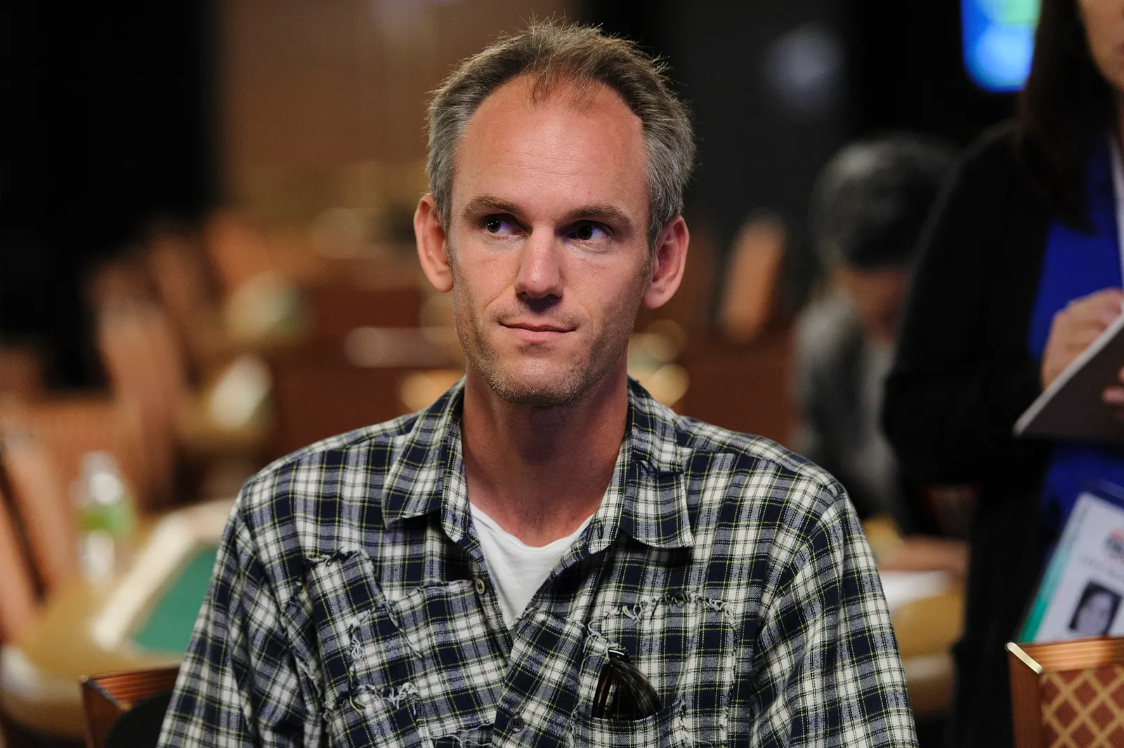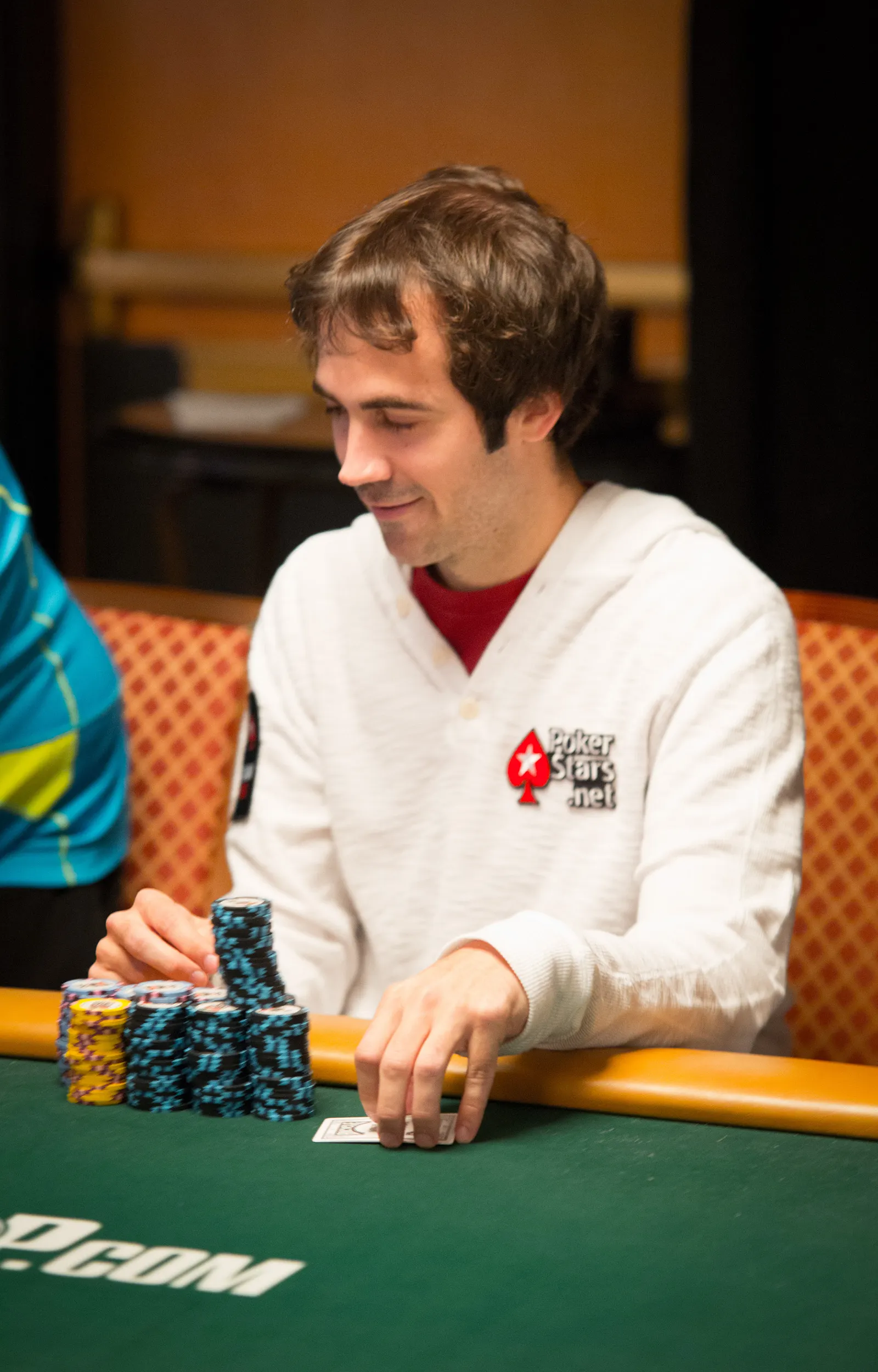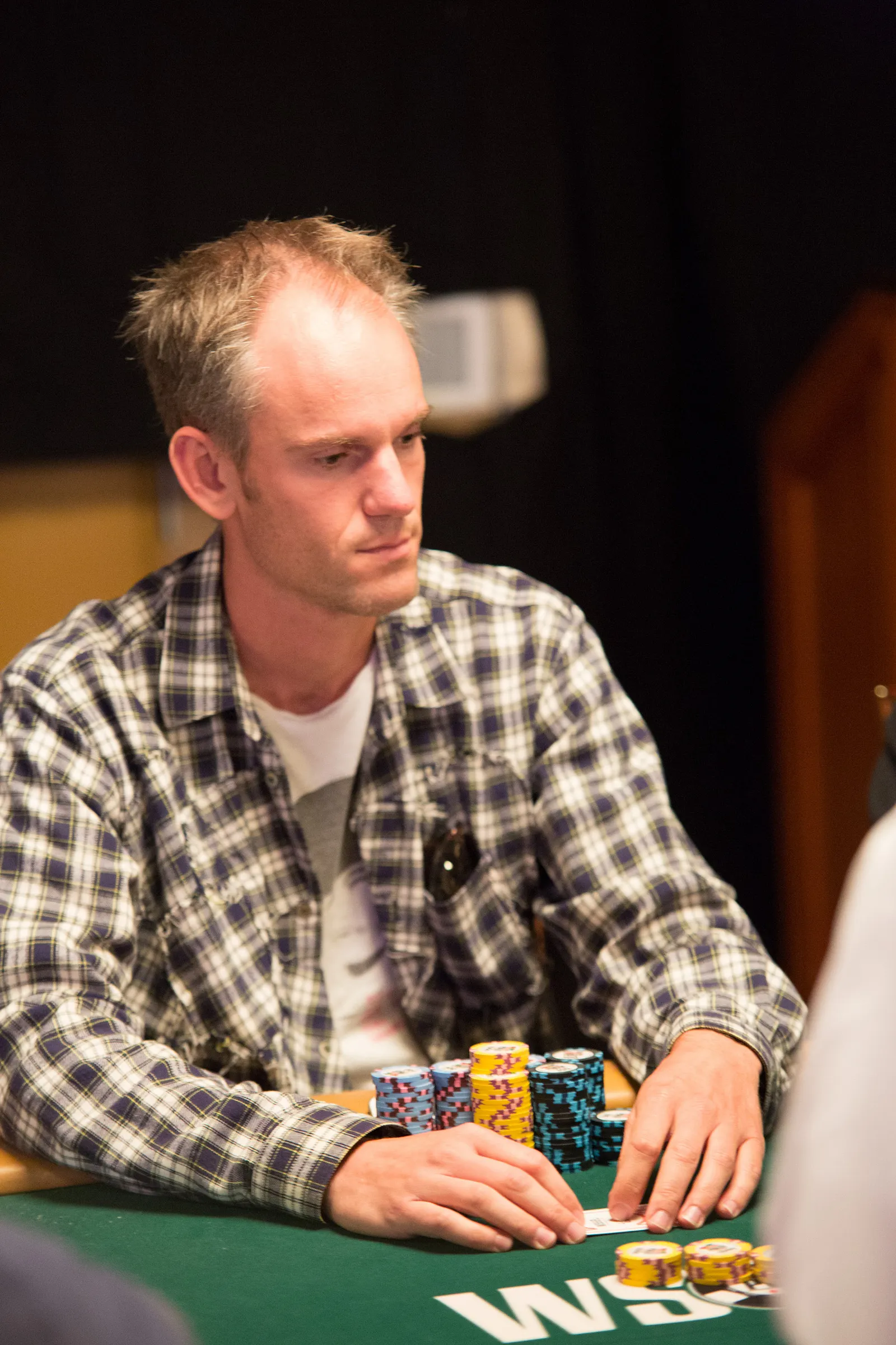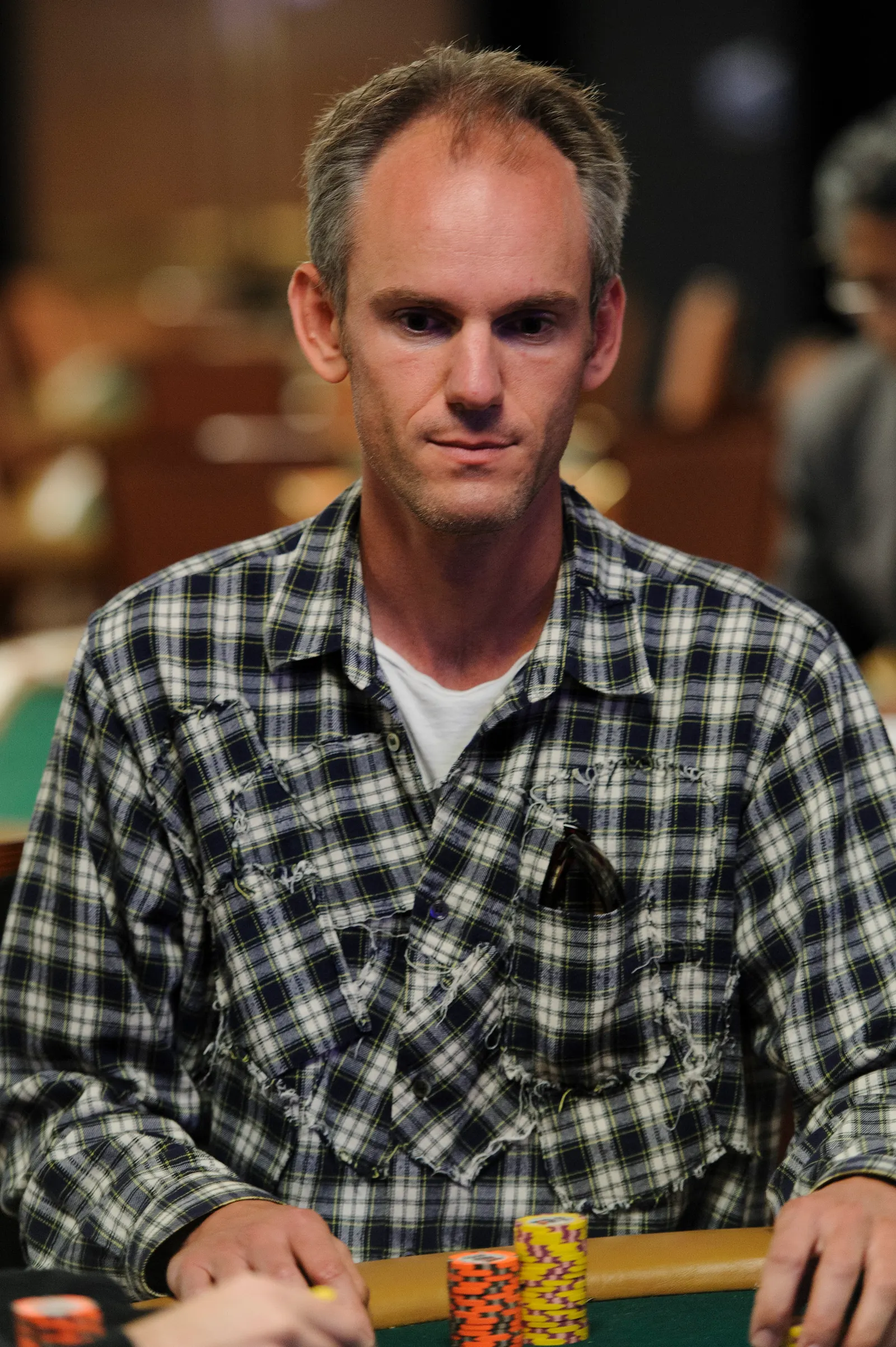 Jason Mercier rushing between two events accidently crushes something belonging to his tablemate