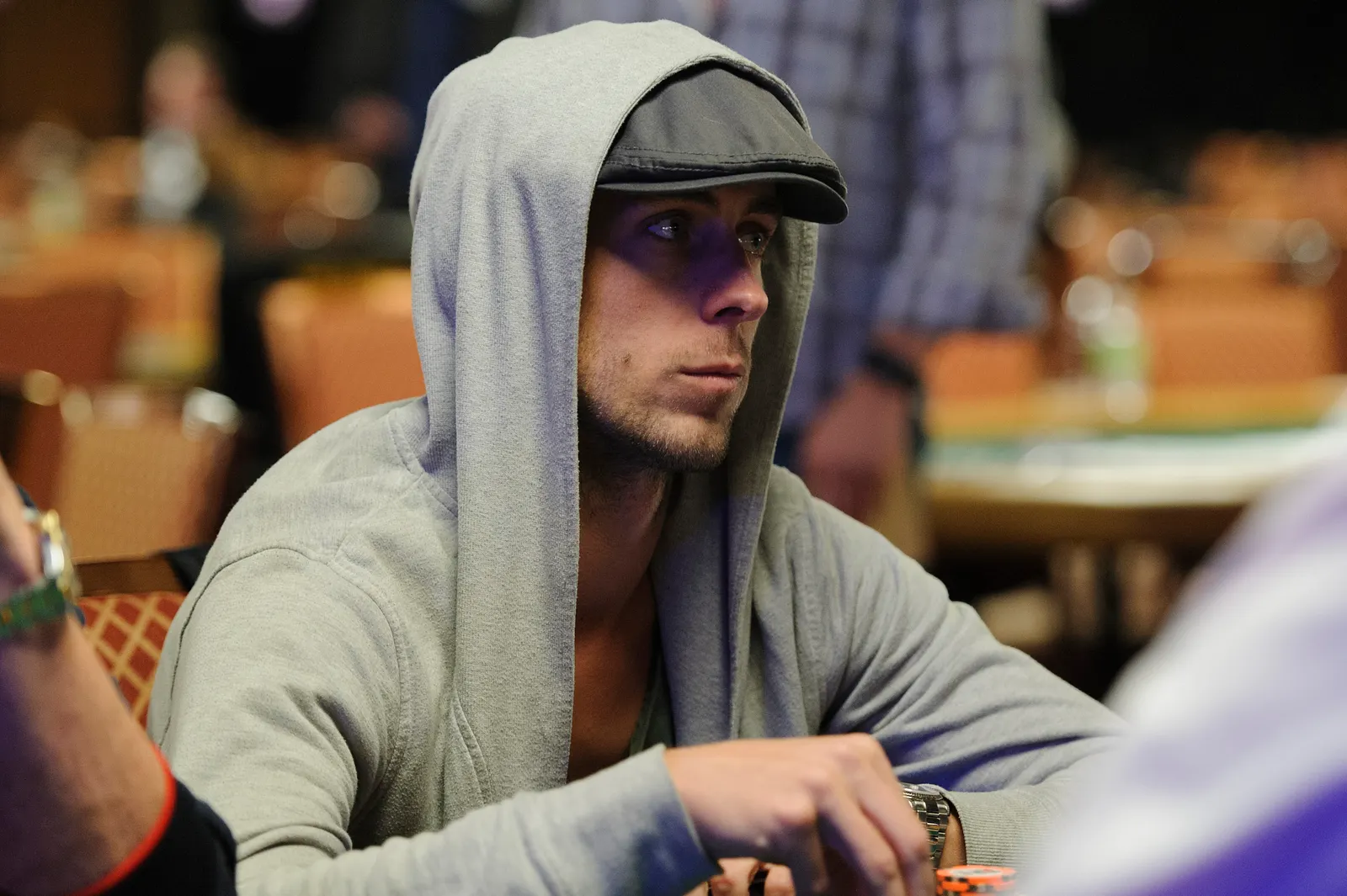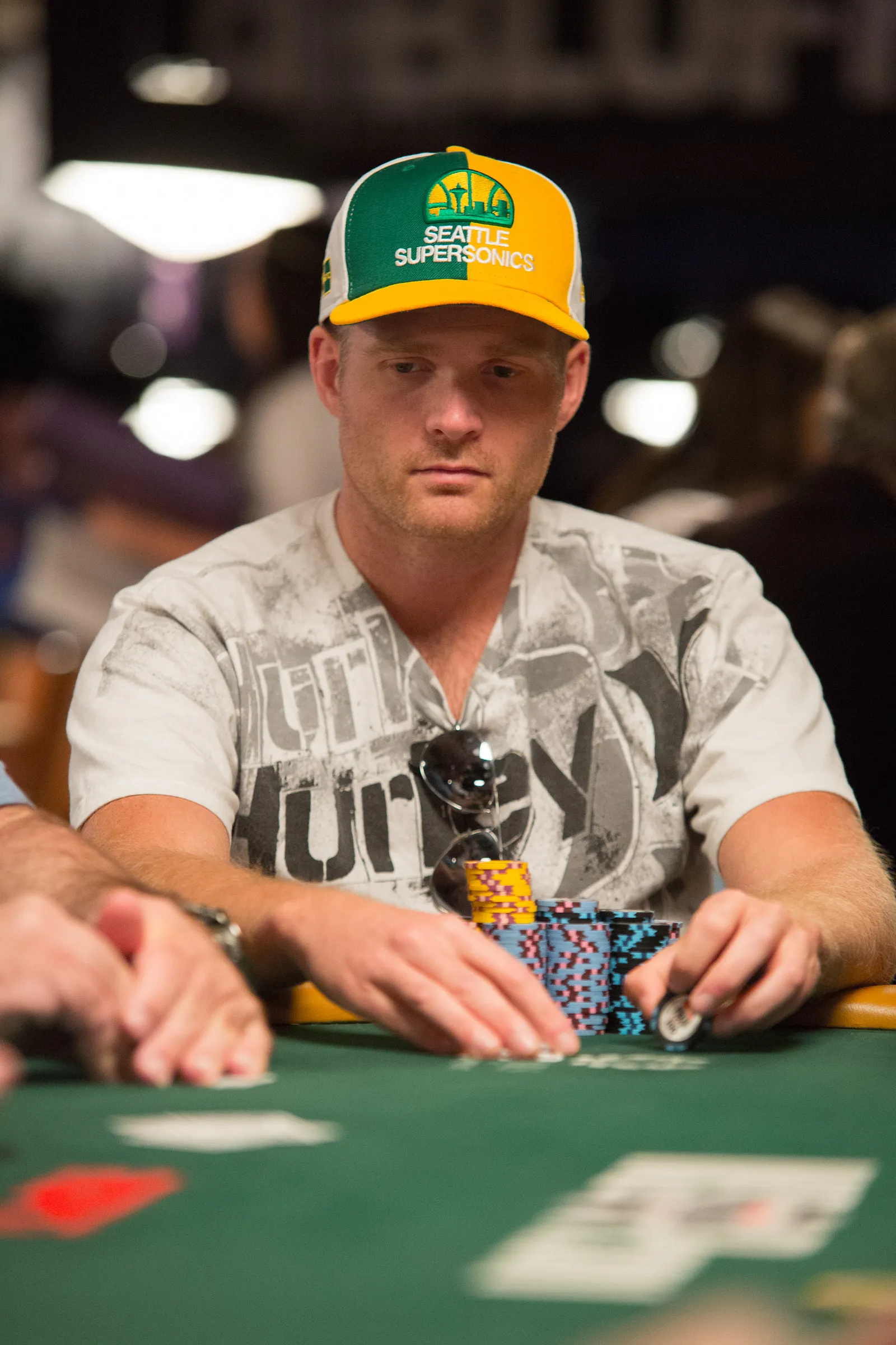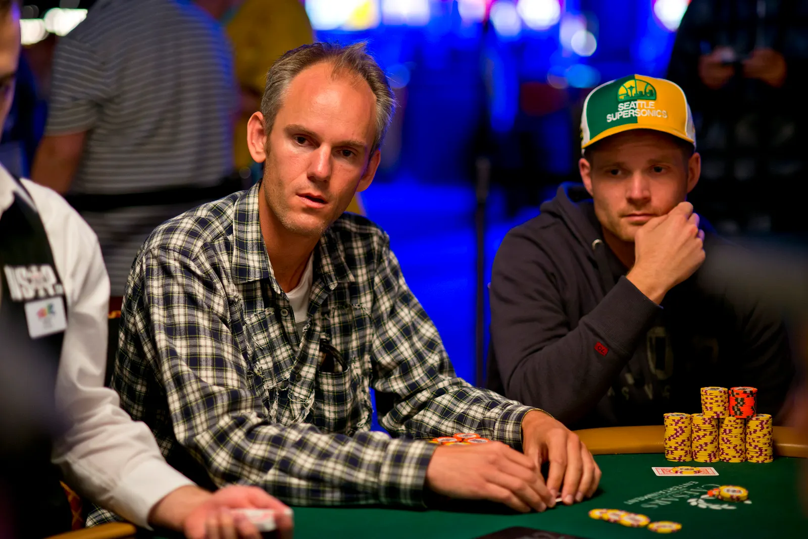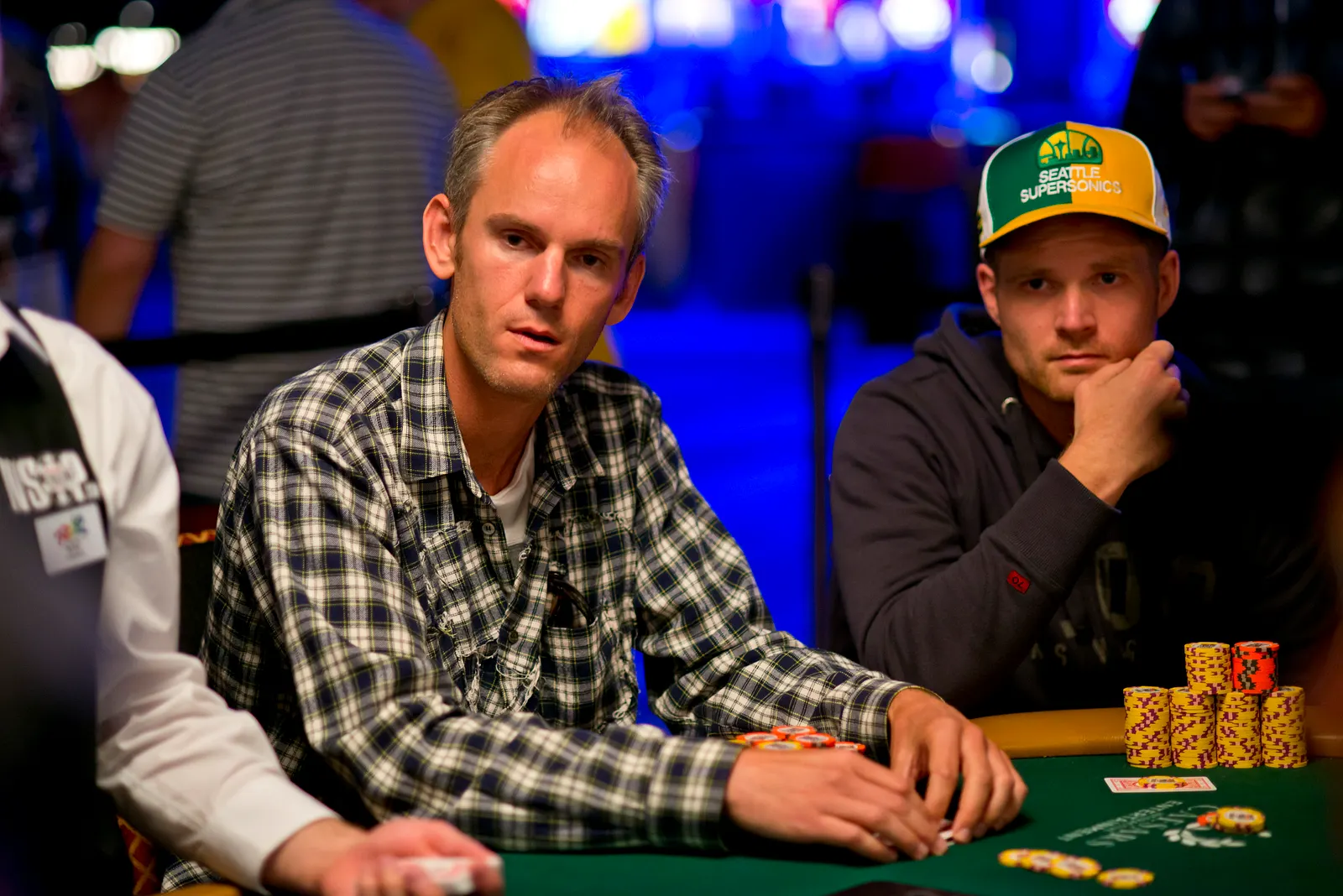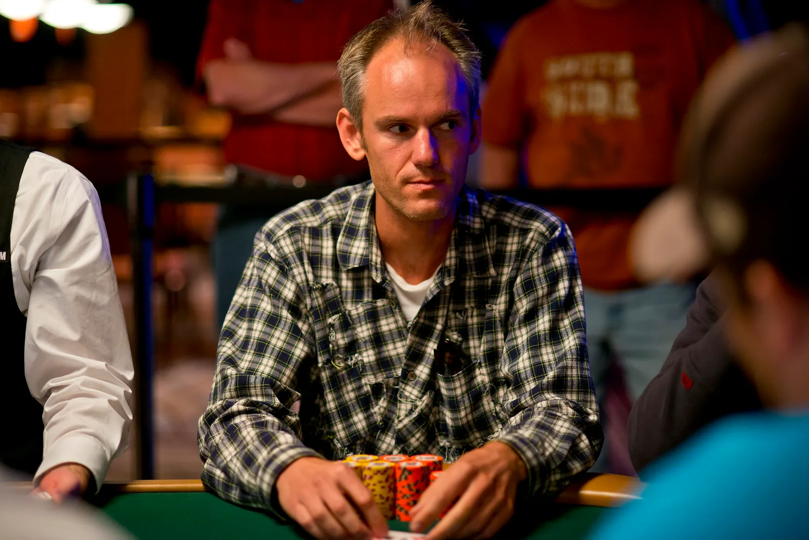 Jason Mercier rushing between two events accidently crushes something belonging to his tablemate