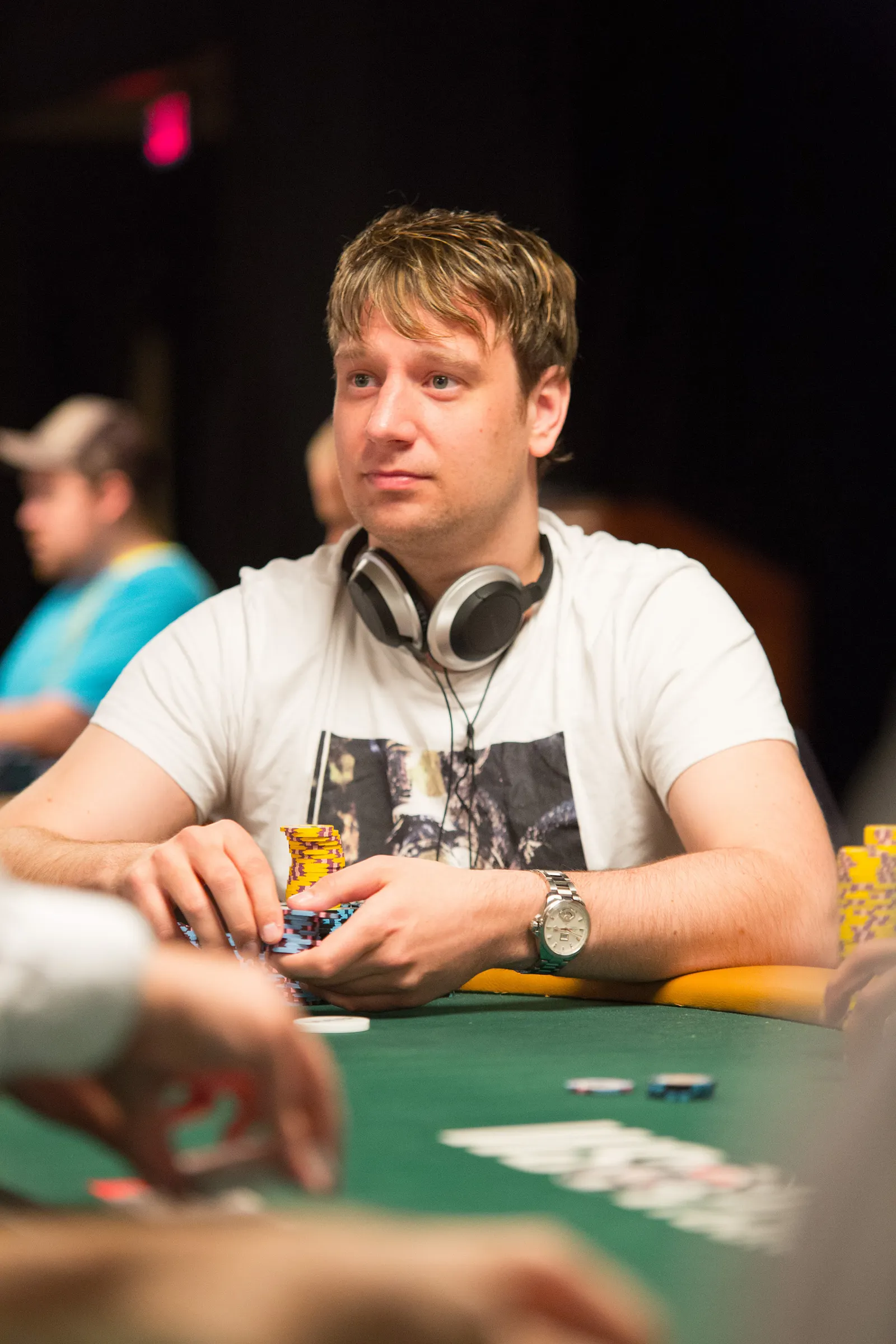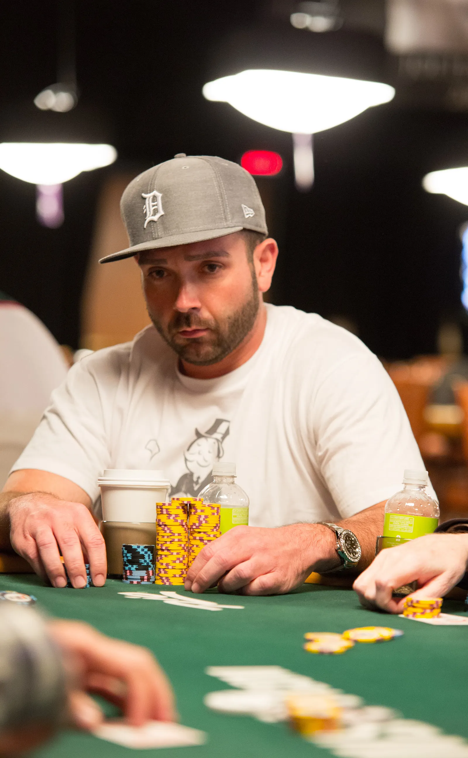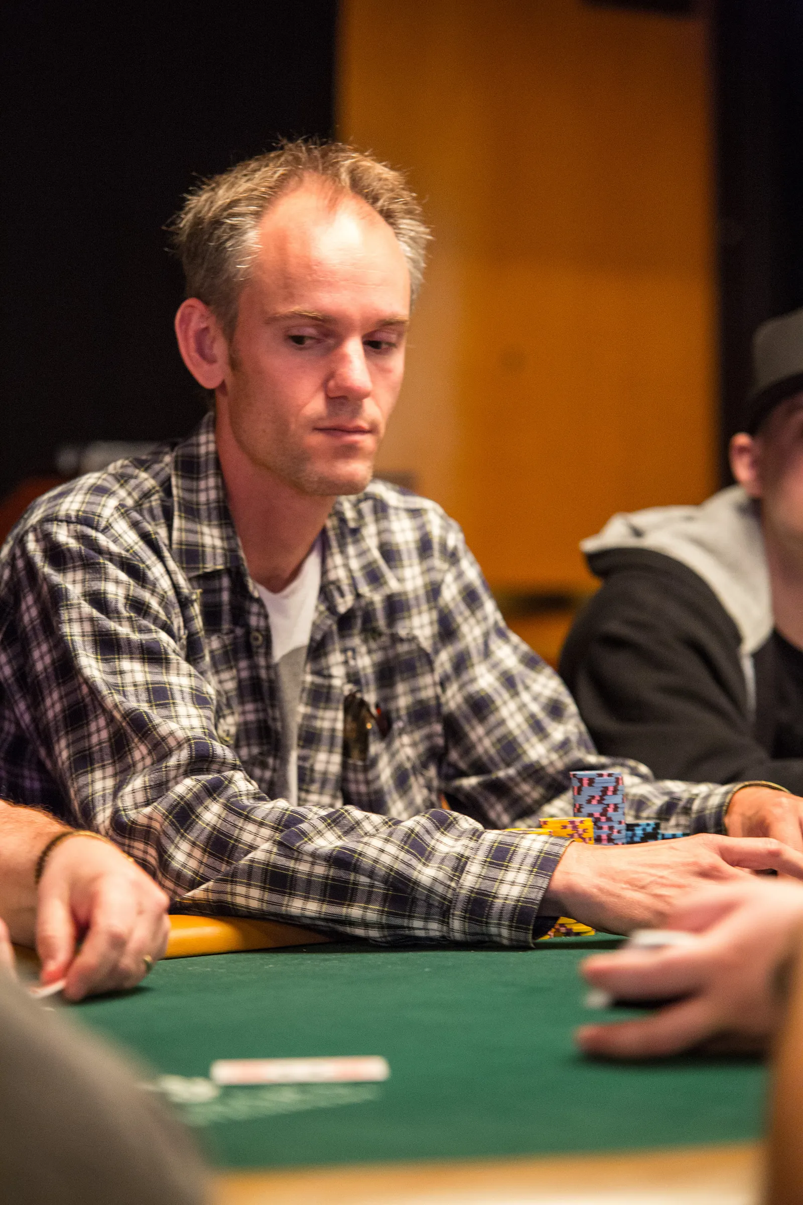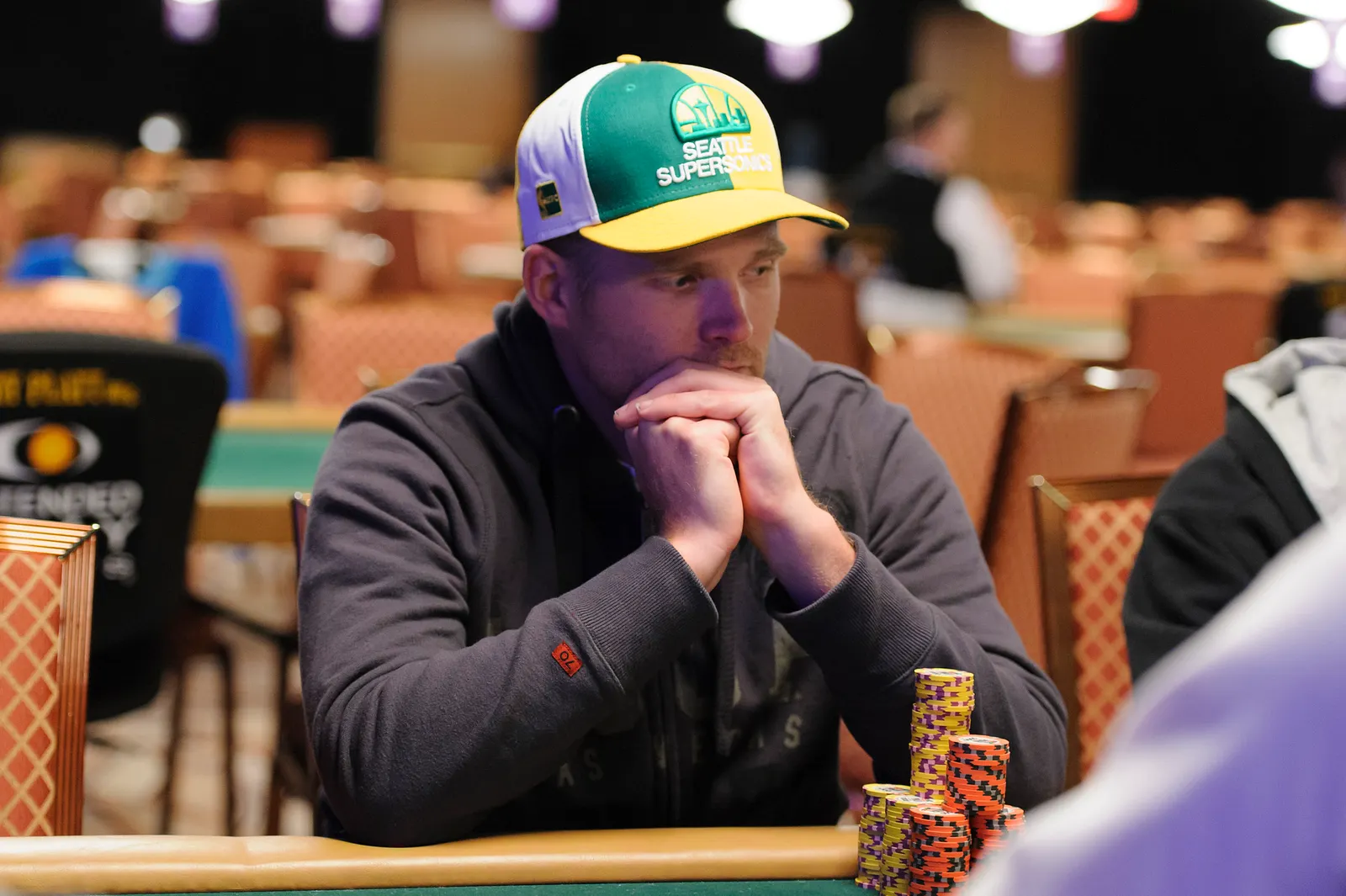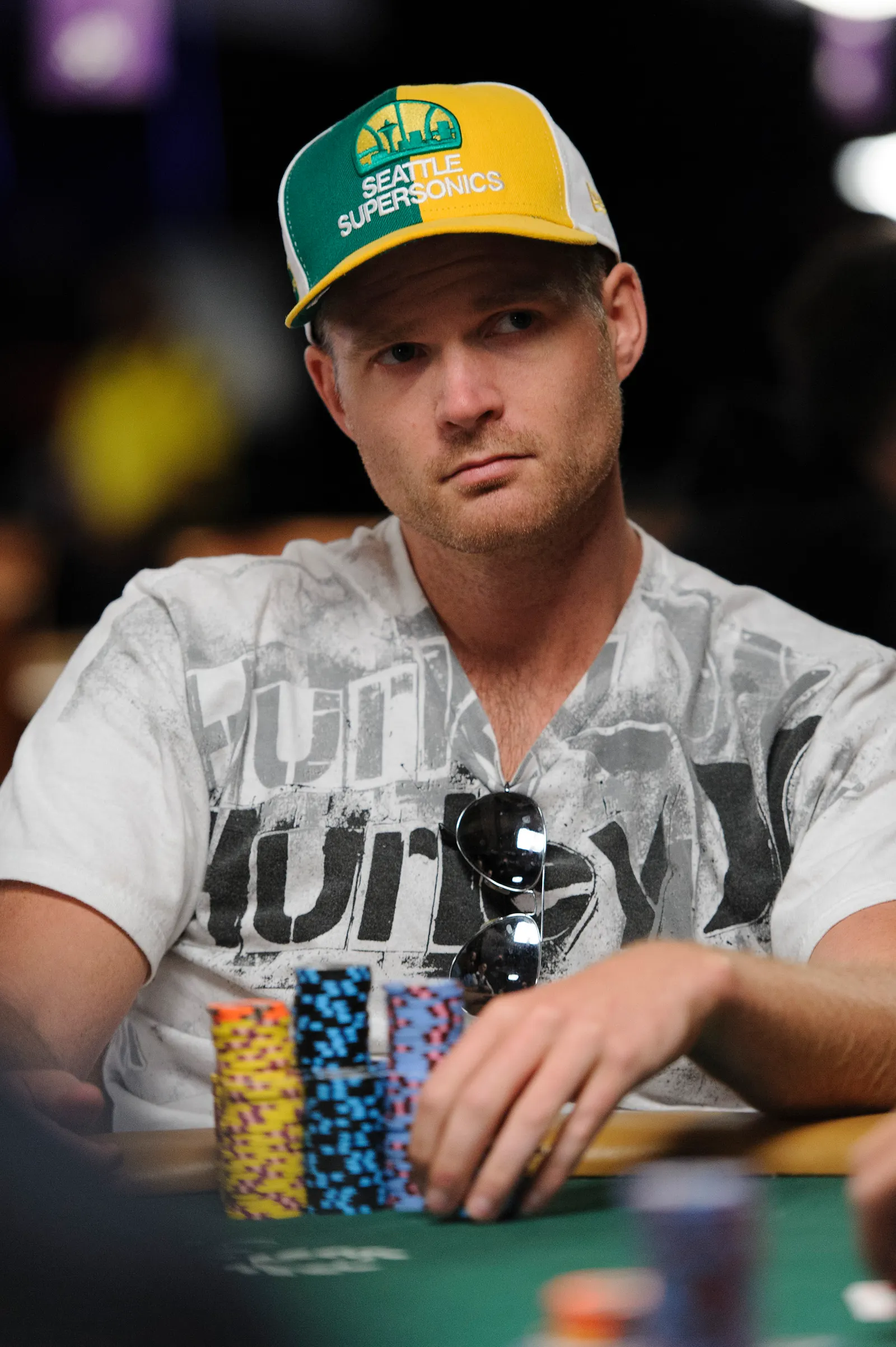 Jason Mercier rushing between two events accidently crushes something belonging to his tablemate