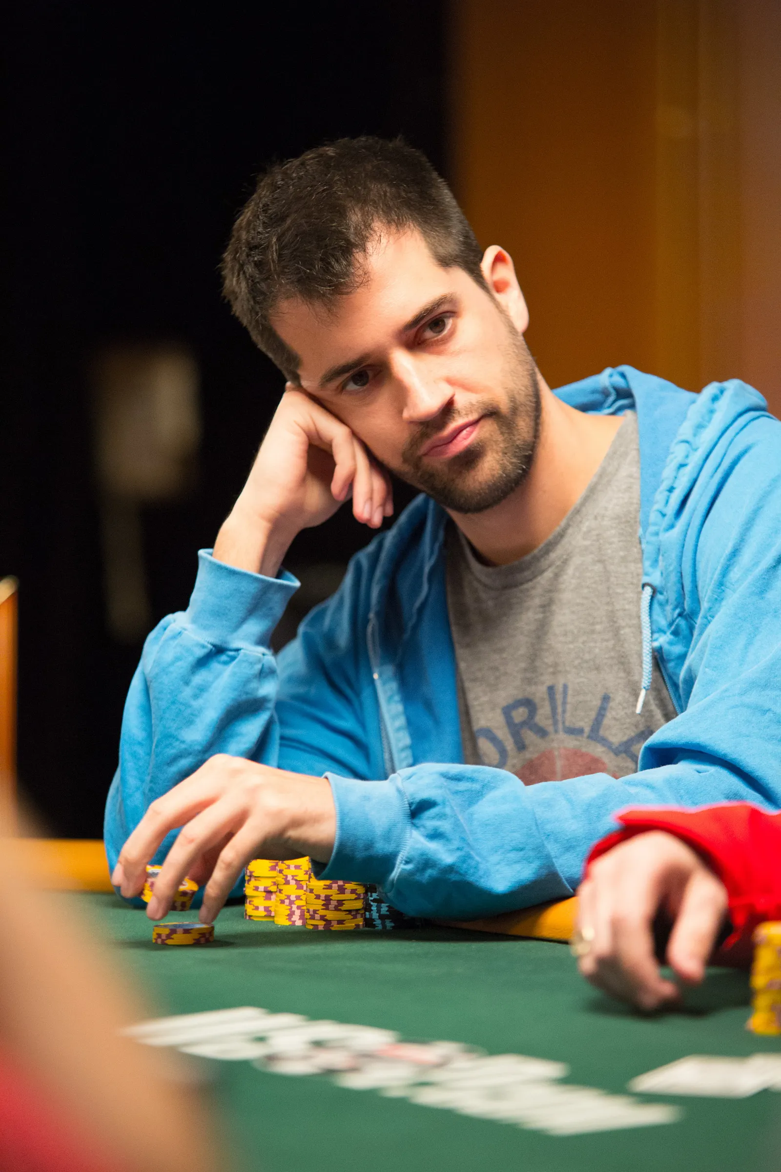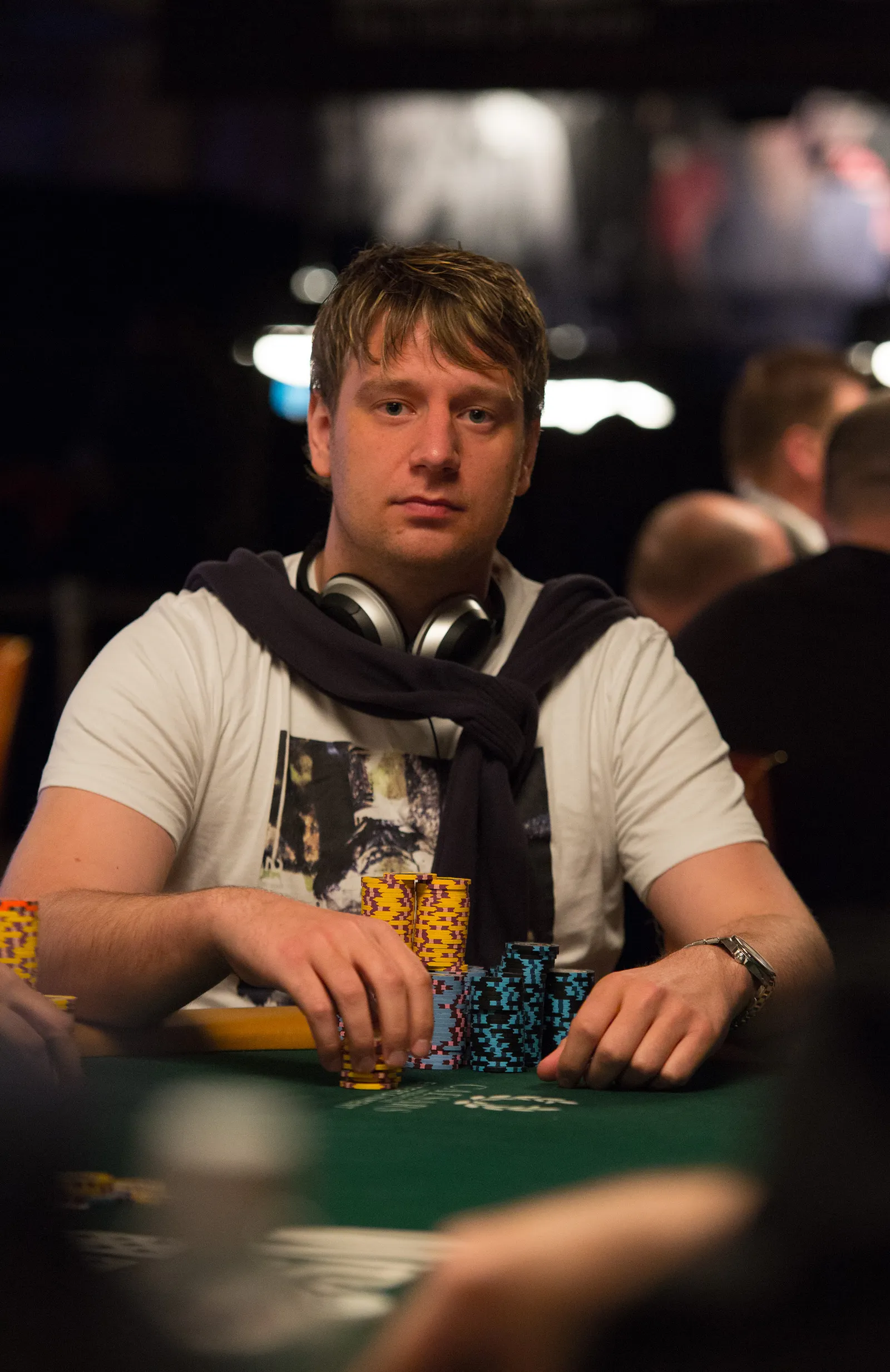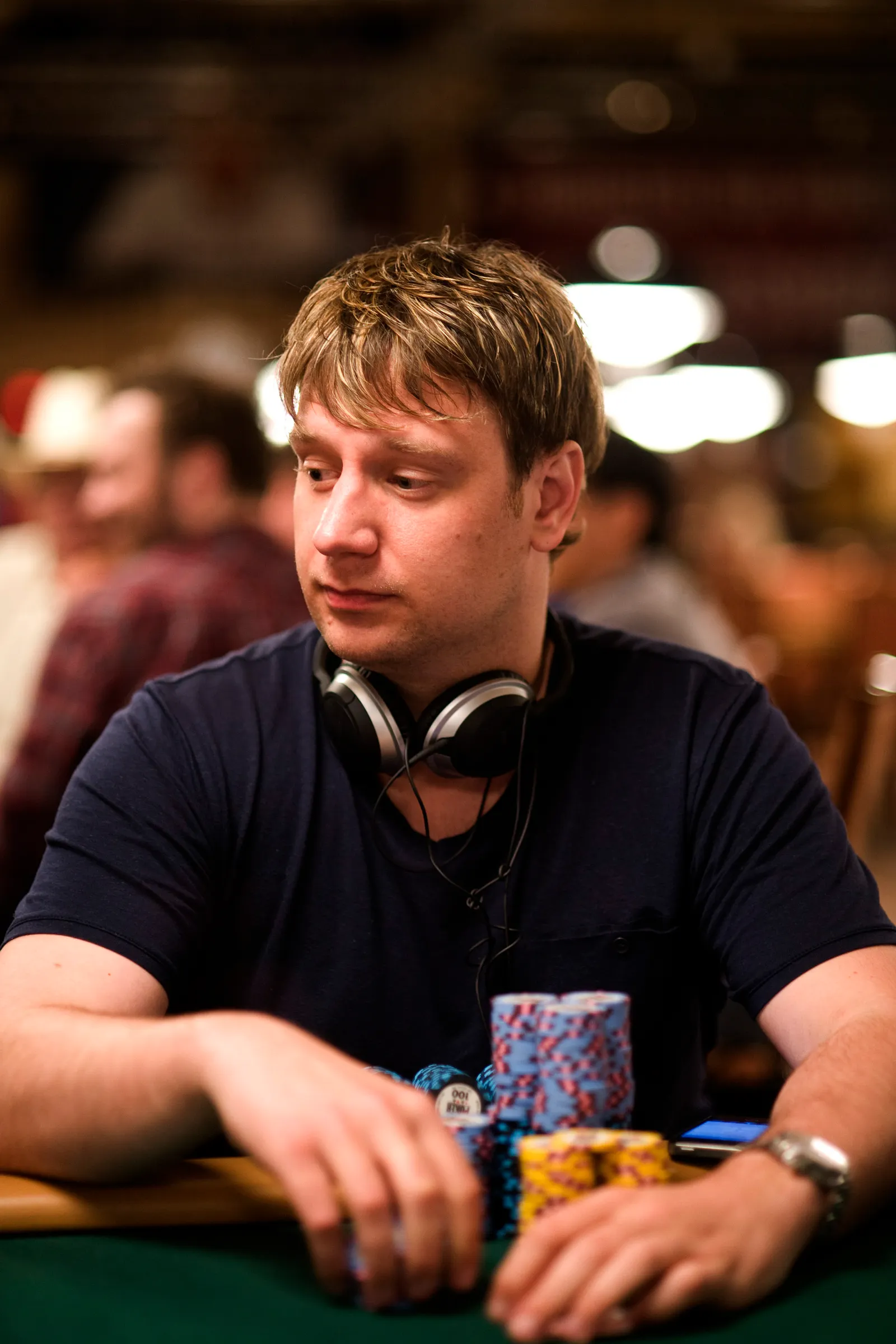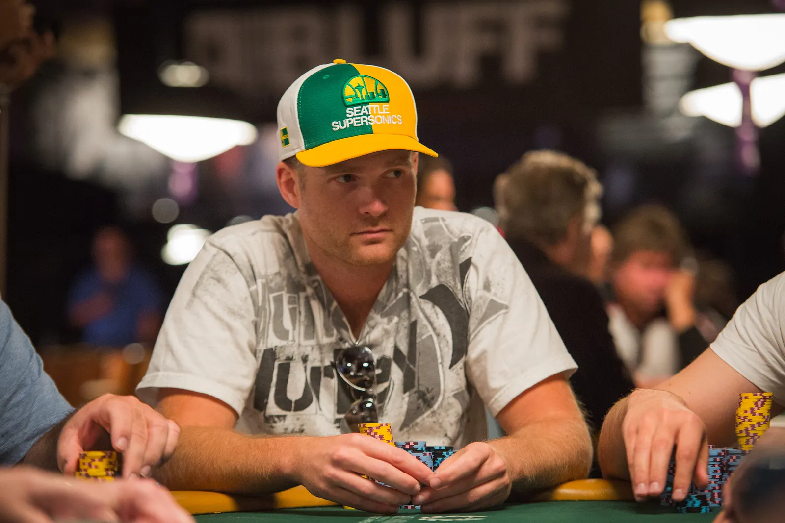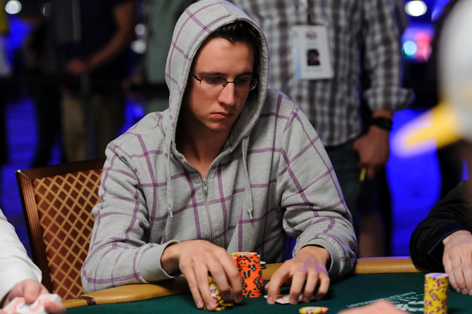Jason Mercier rushing between two events accidently crushes something belonging to his tablemate