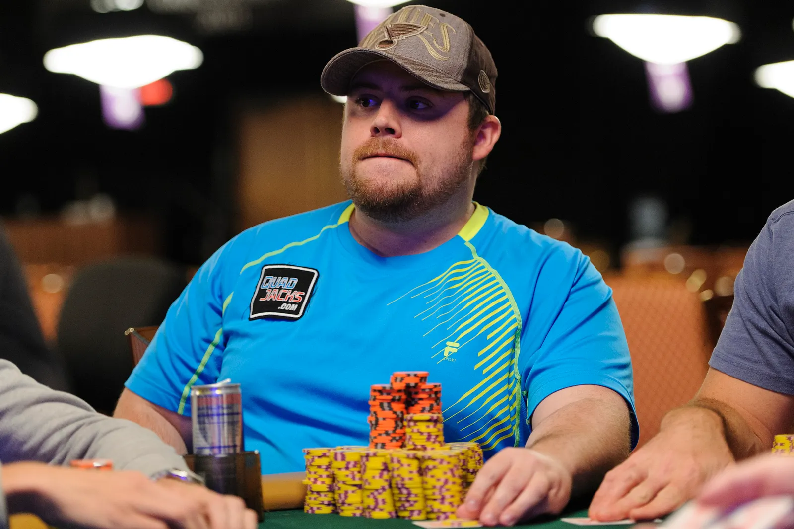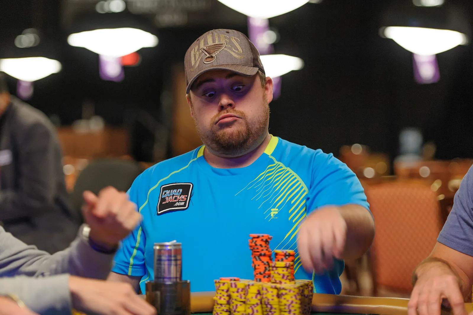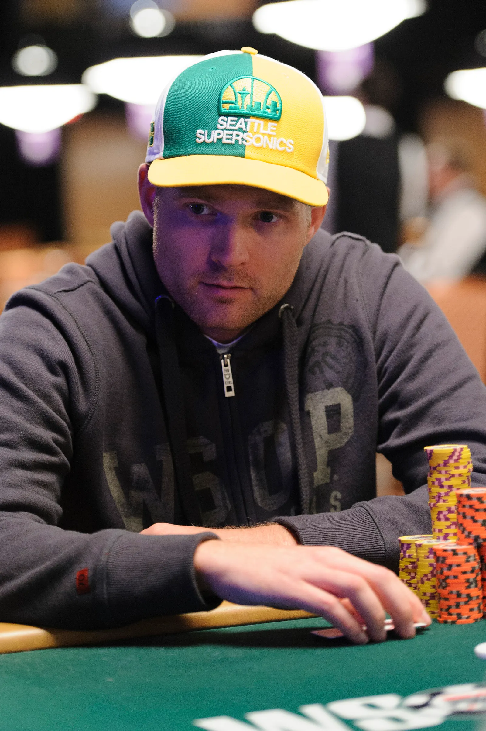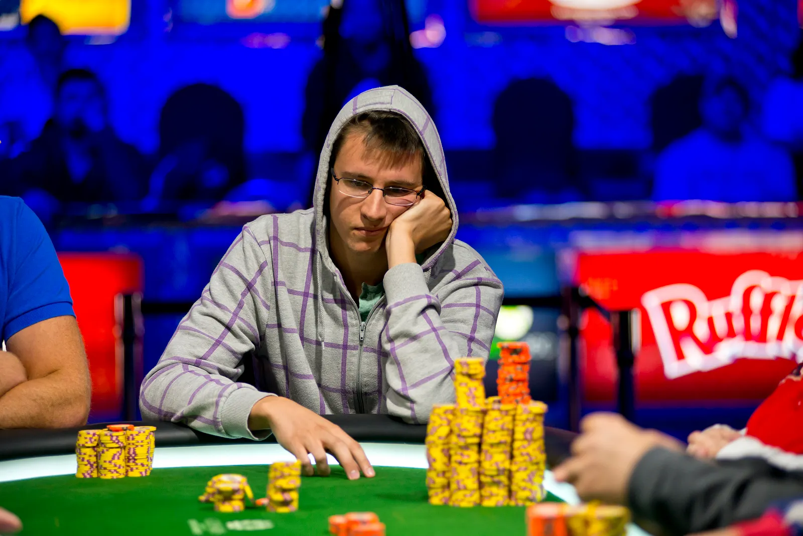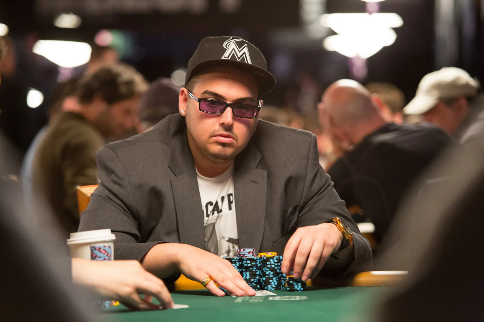 Jason Mercier rushing between two events accidently crushes something belonging to his tablemate