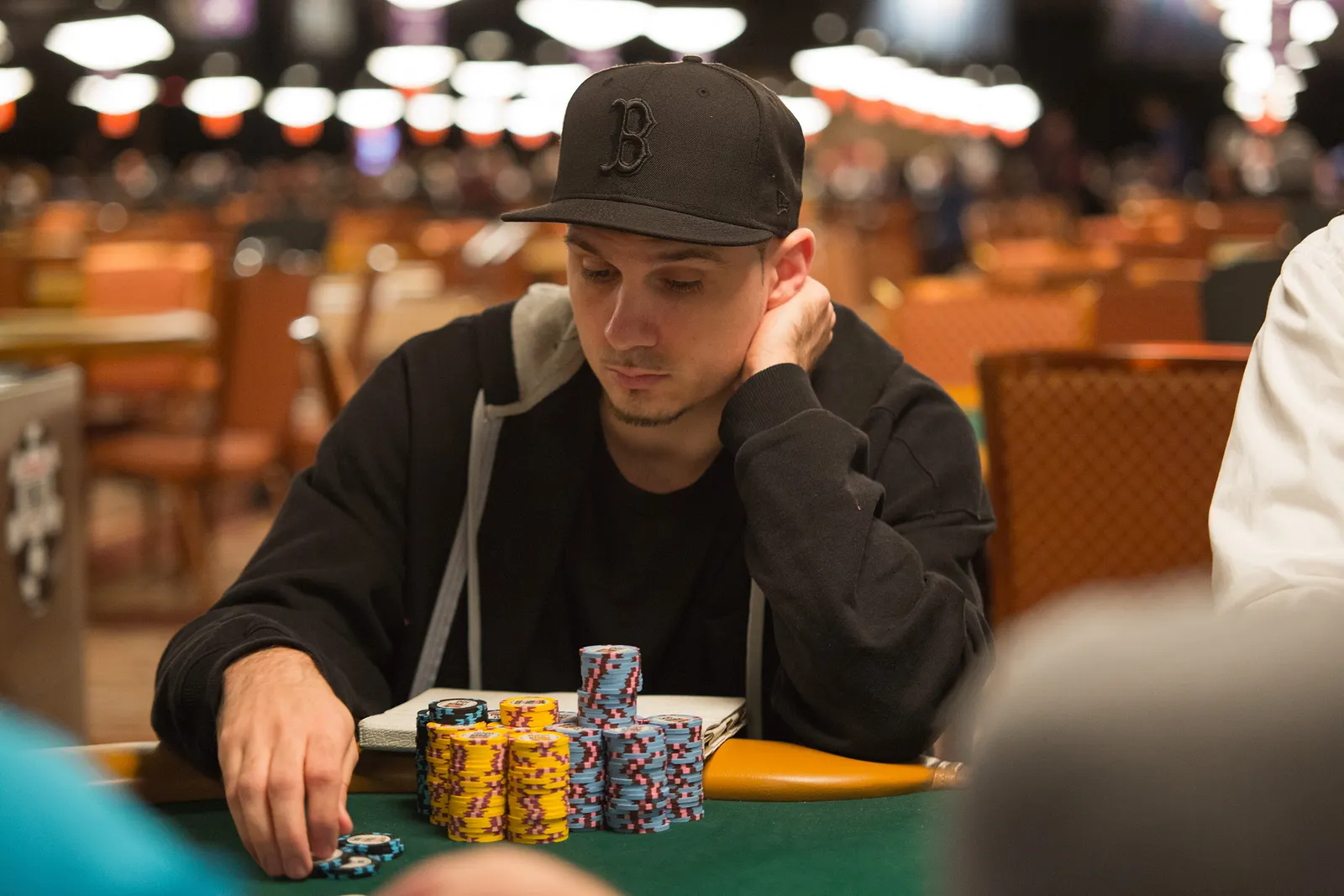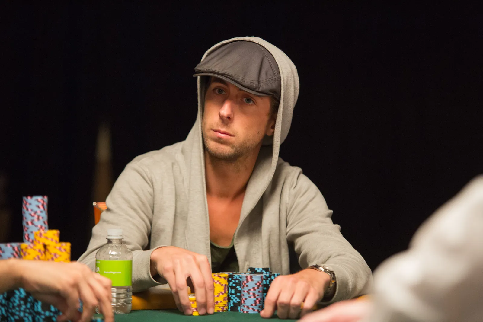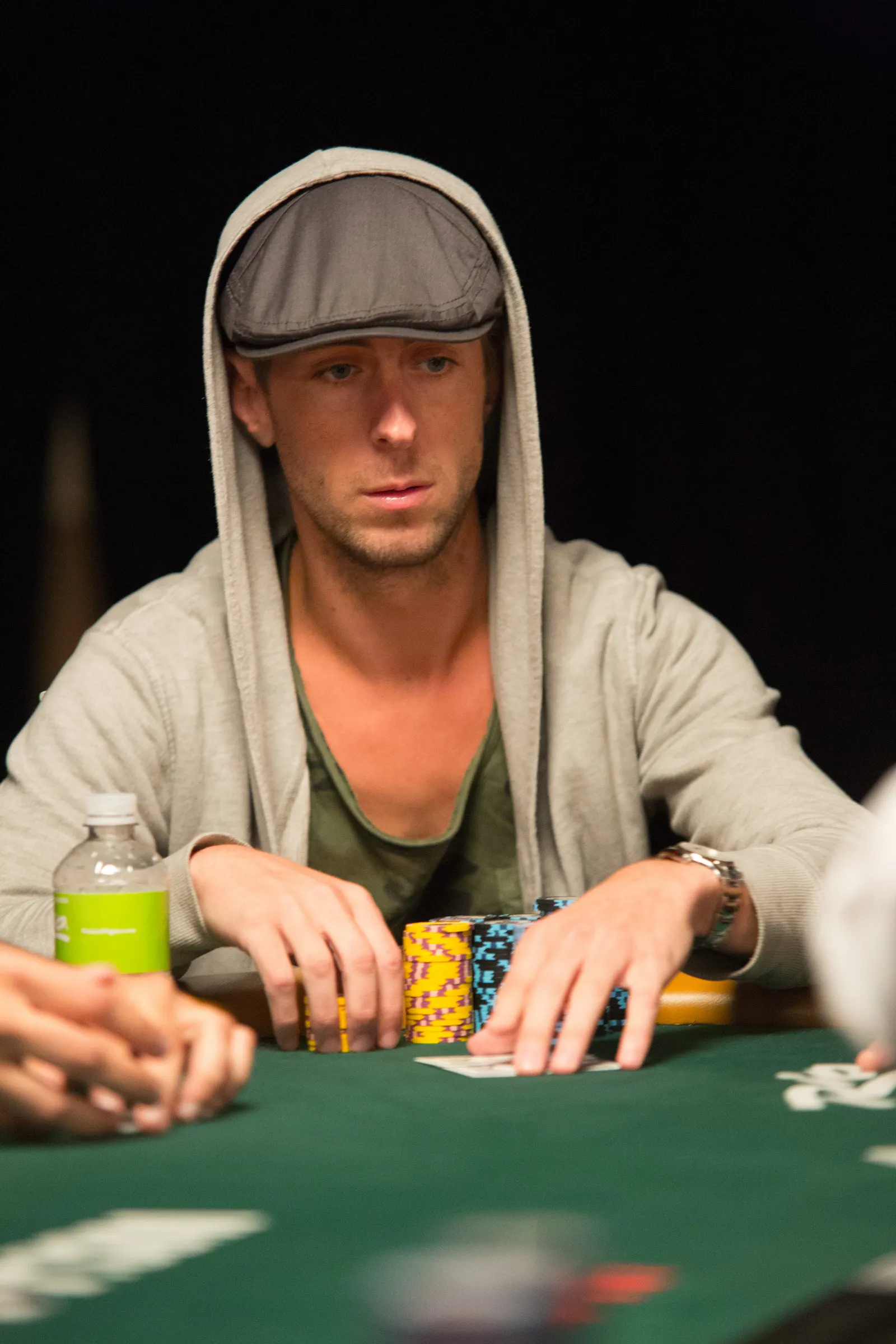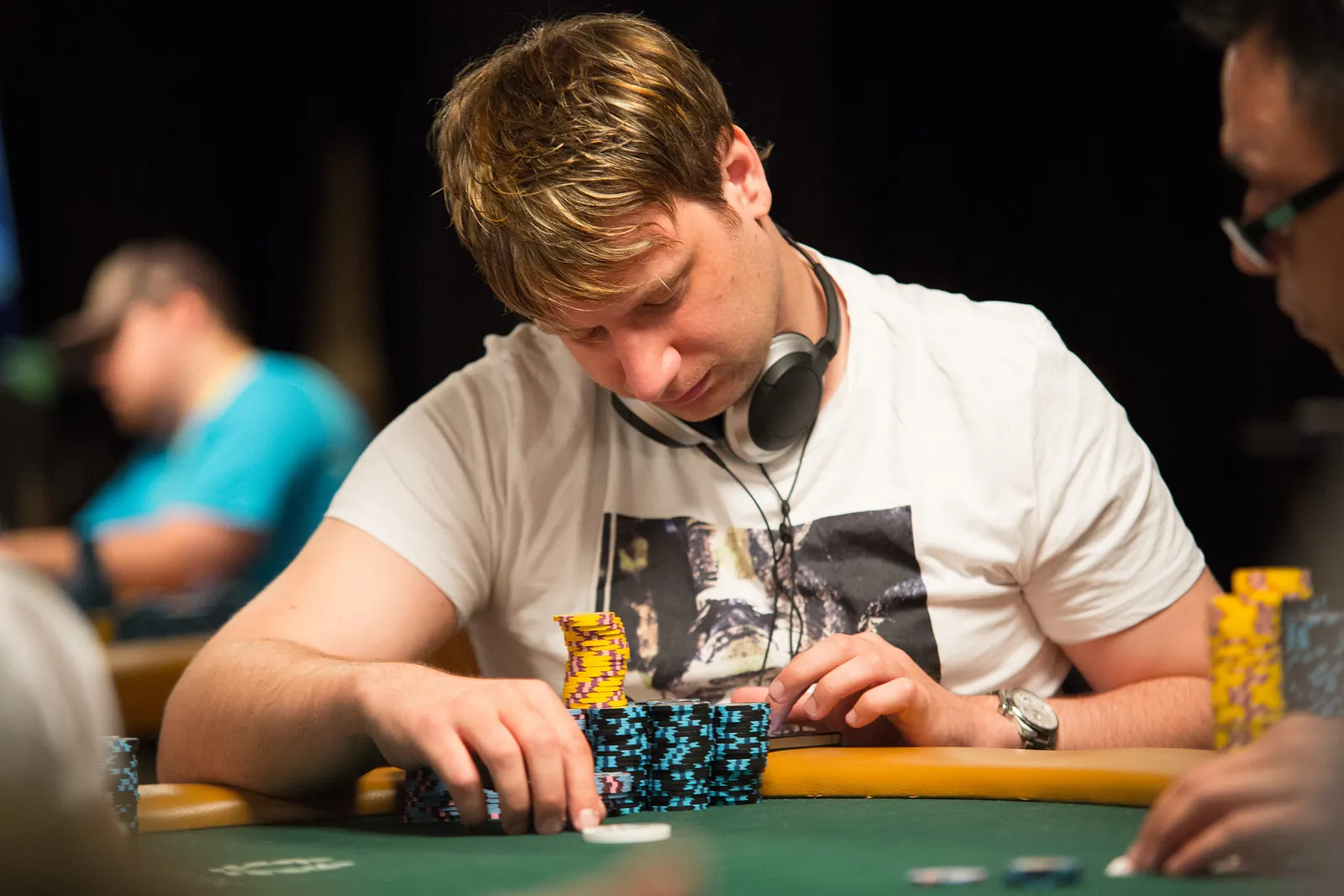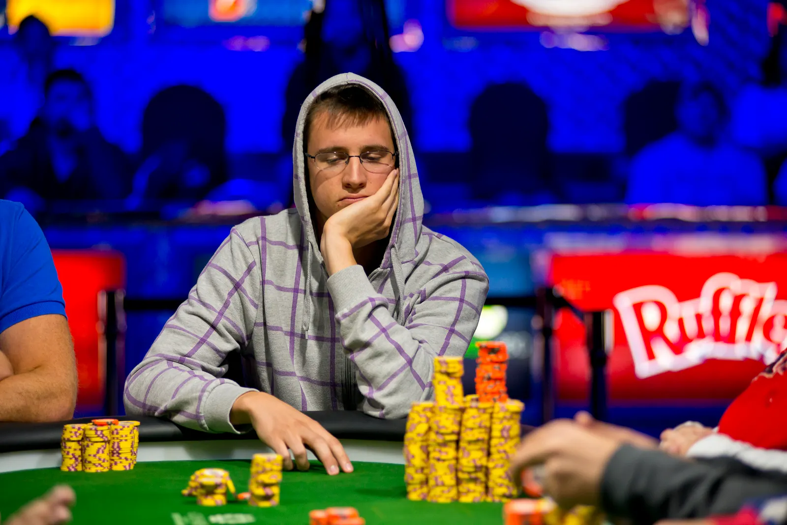 Jason Mercier rushing between two events accidently crushes something belonging to his tablemate