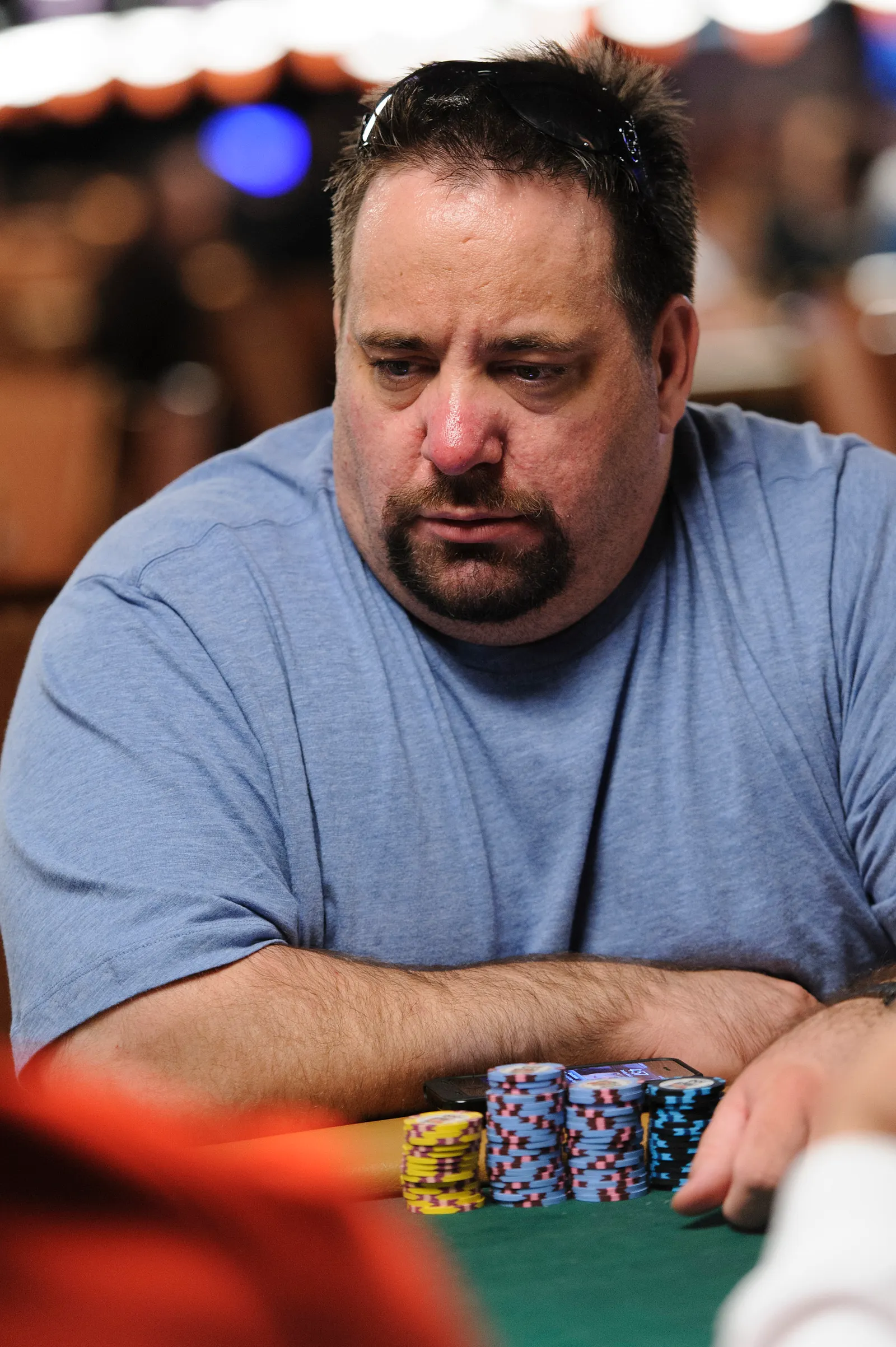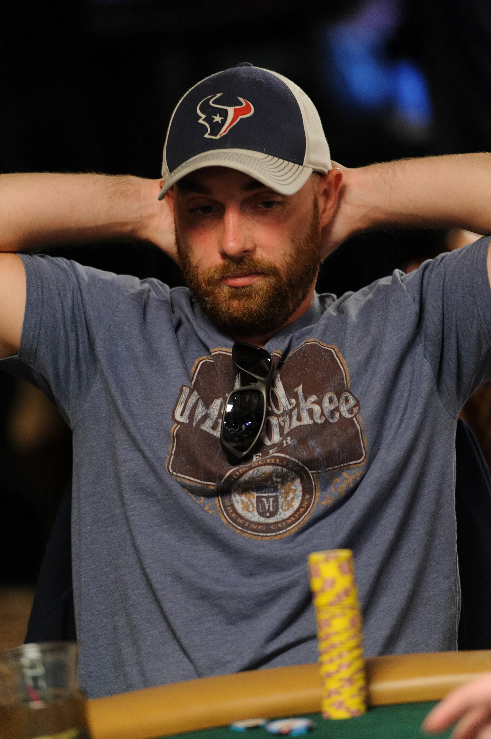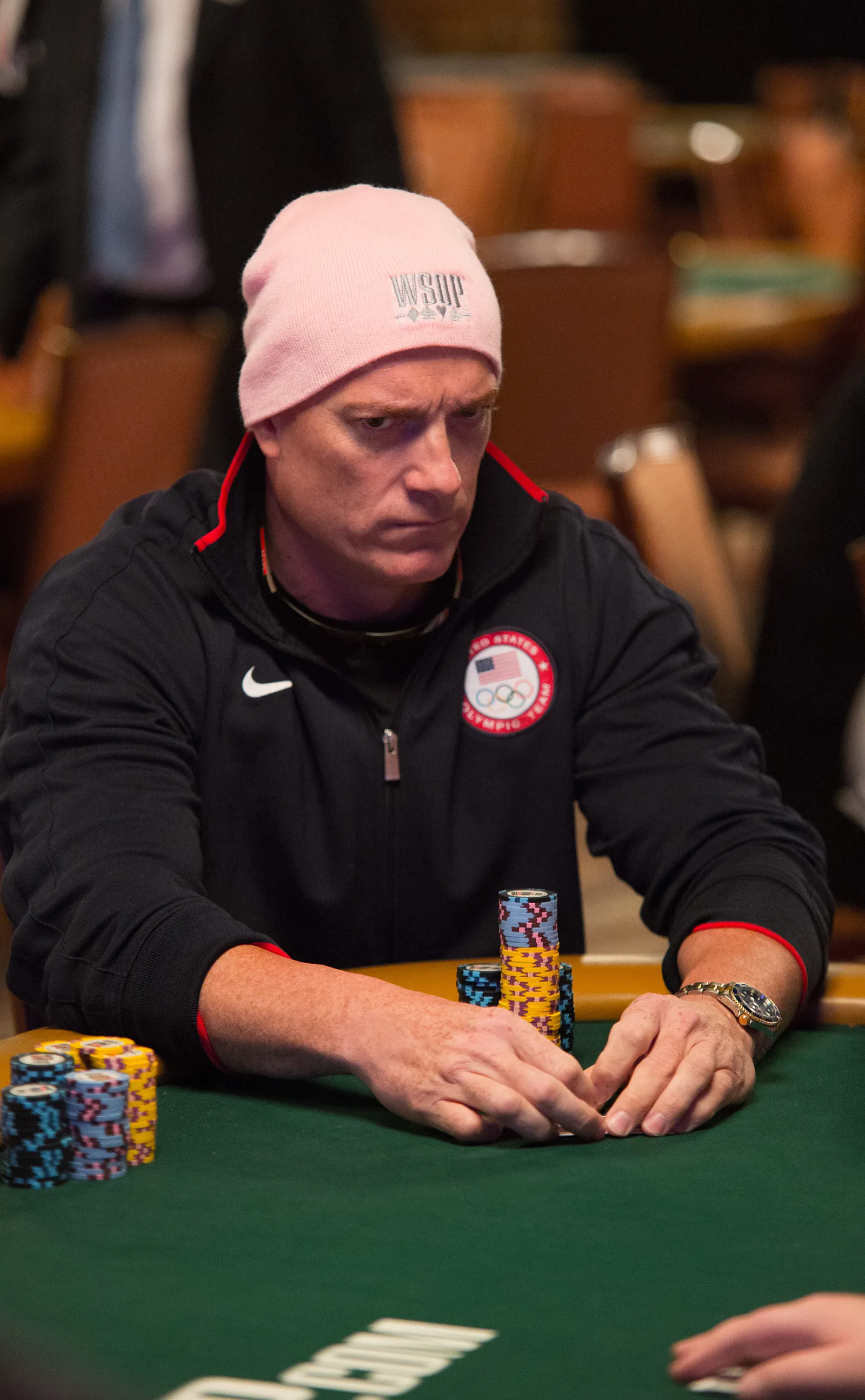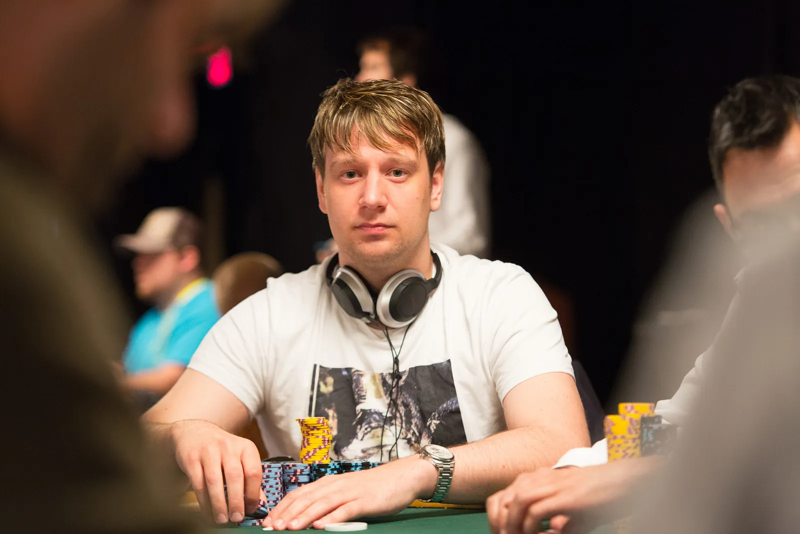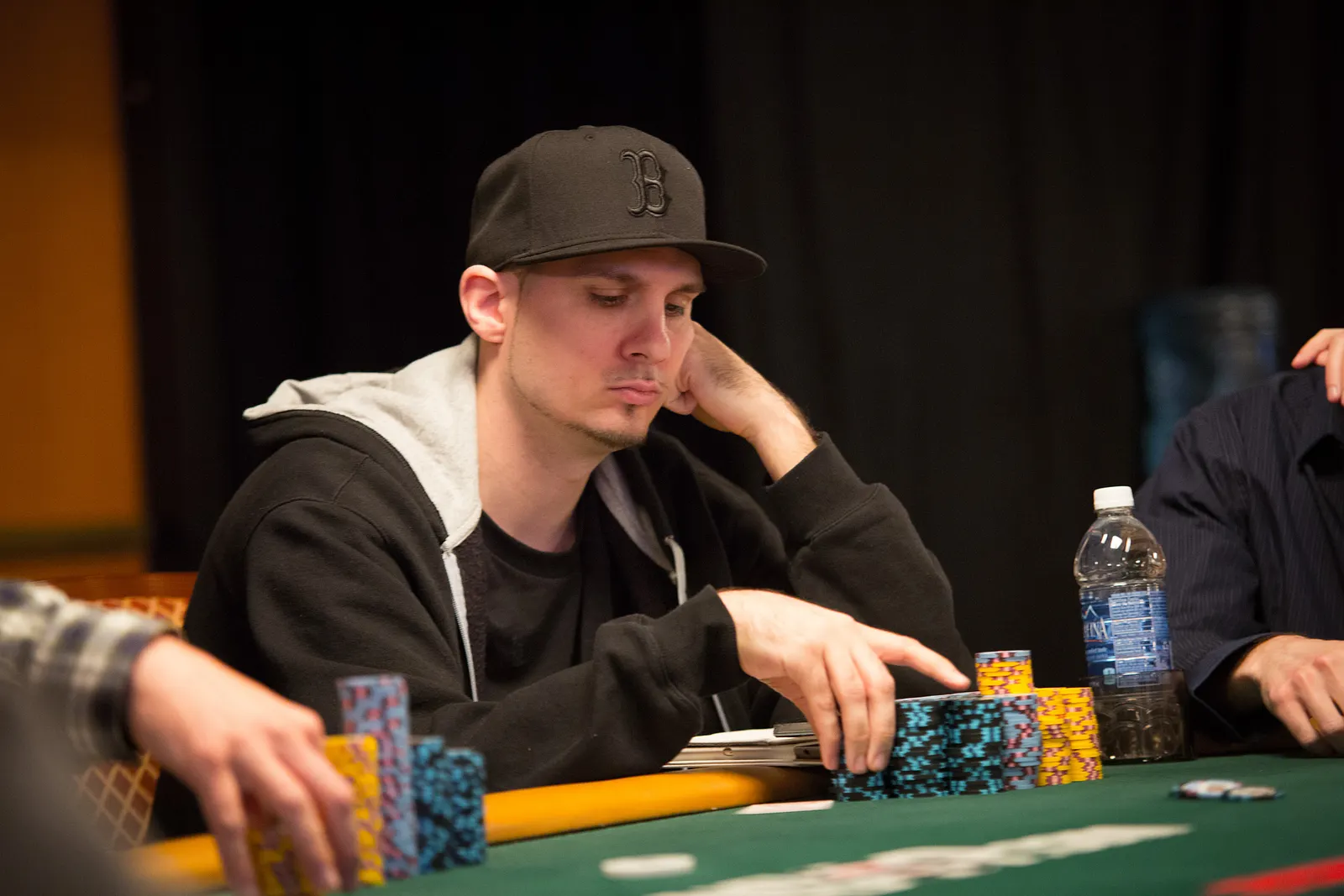 Jason Mercier rushing between two events accidently crushes something belonging to his tablemate
