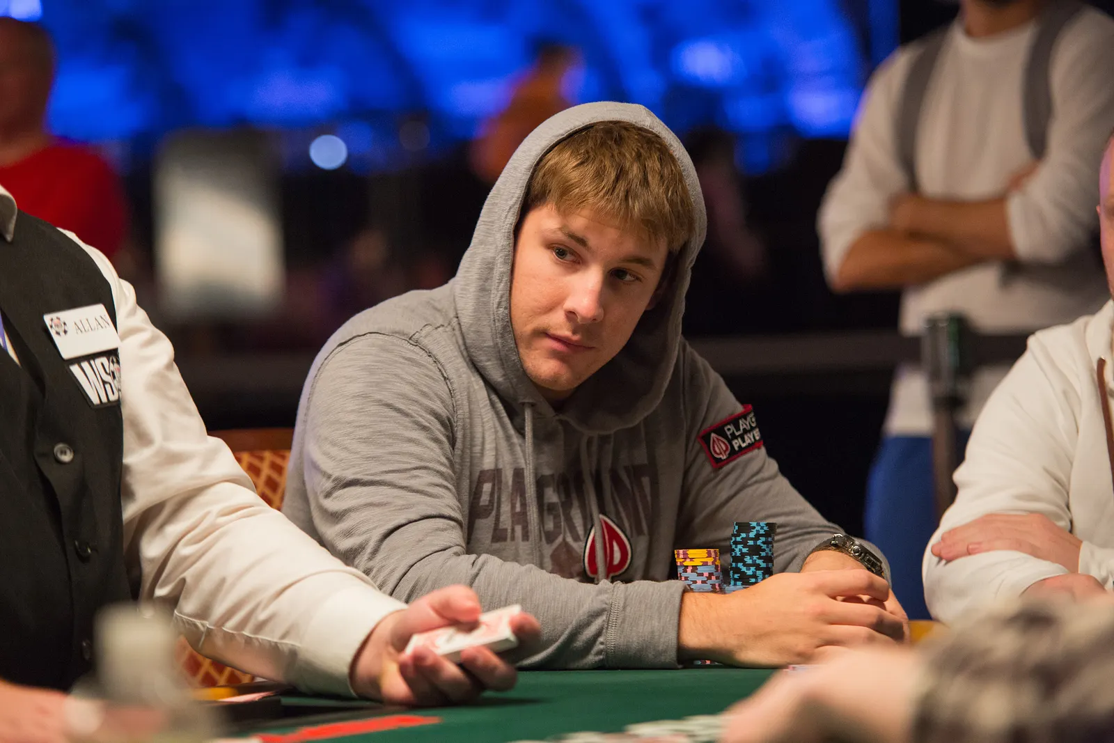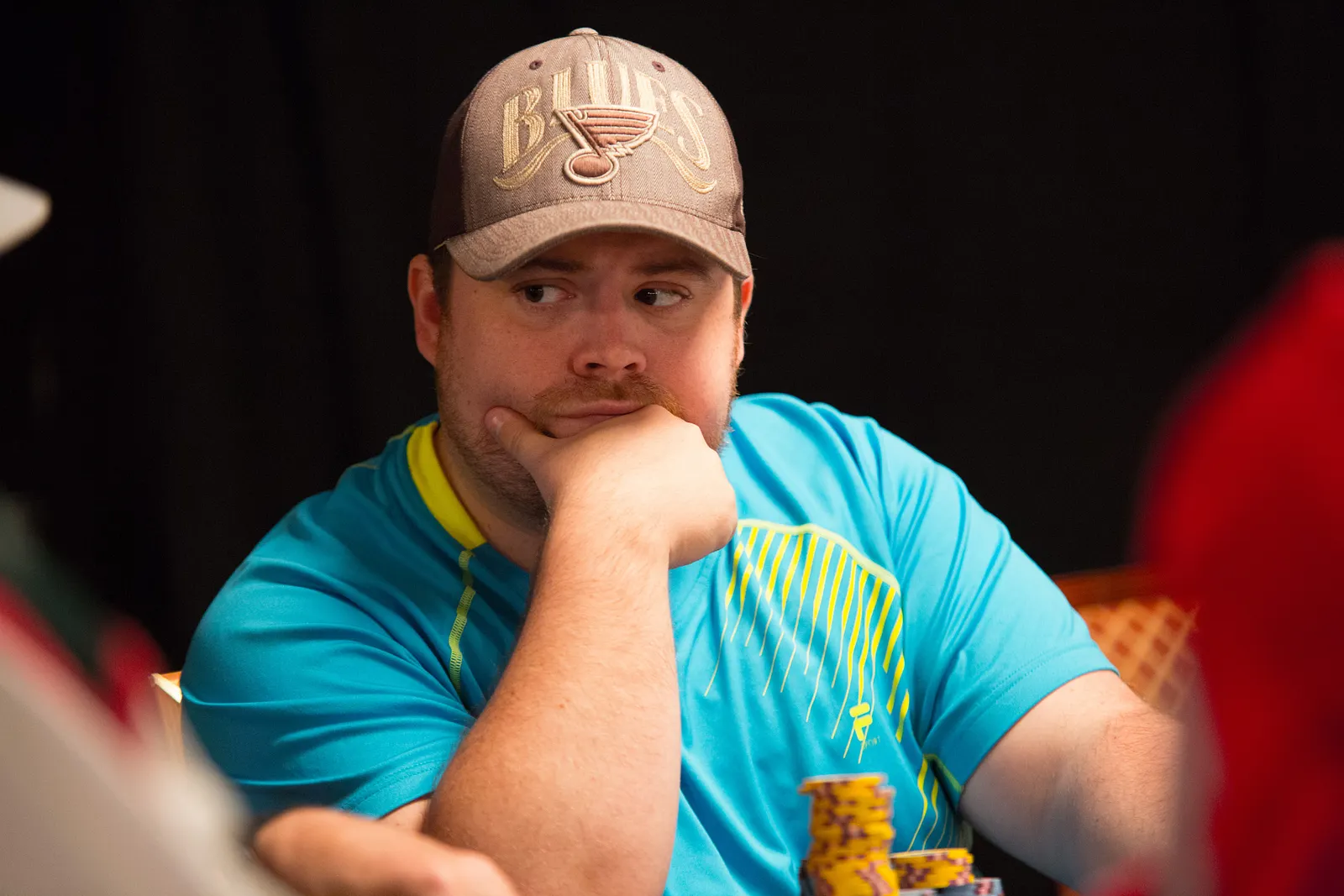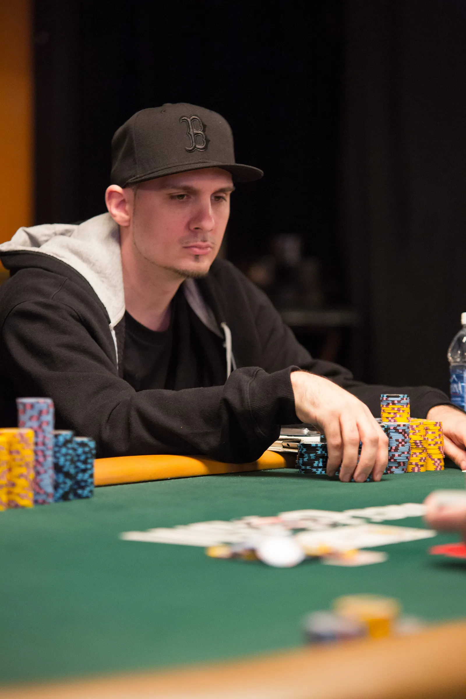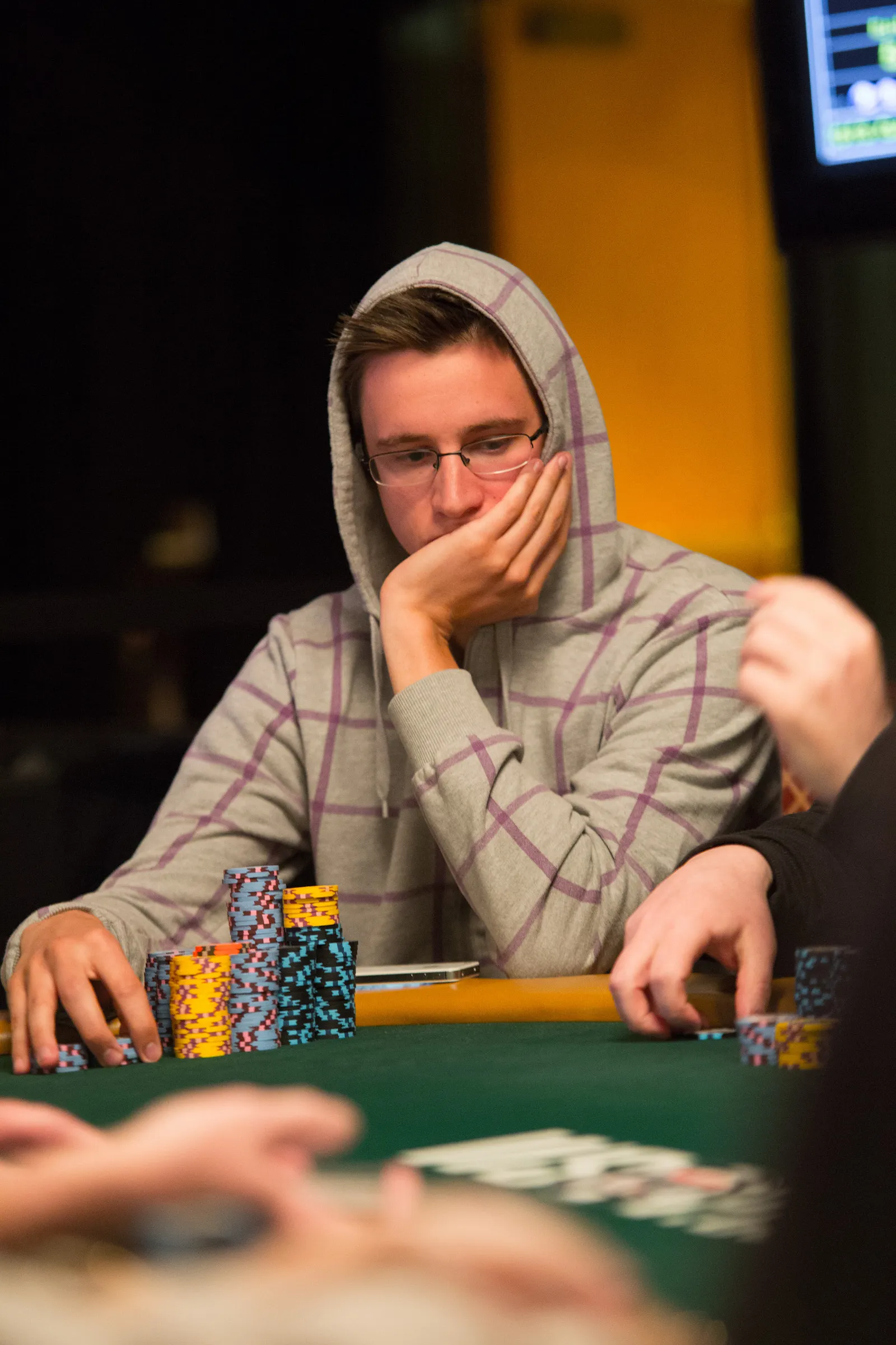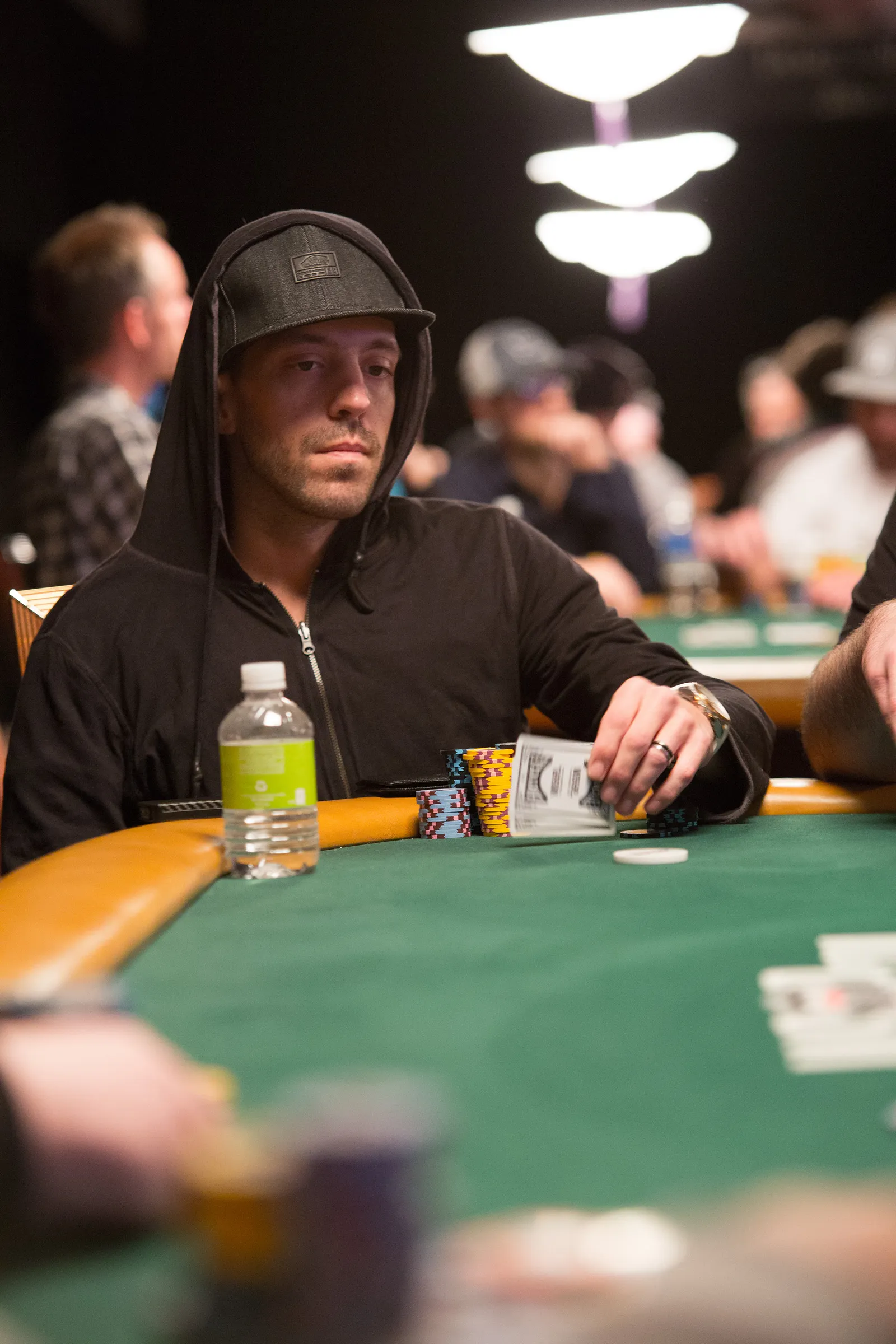 Jason Mercier rushing between two events accidently crushes something belonging to his tablemate