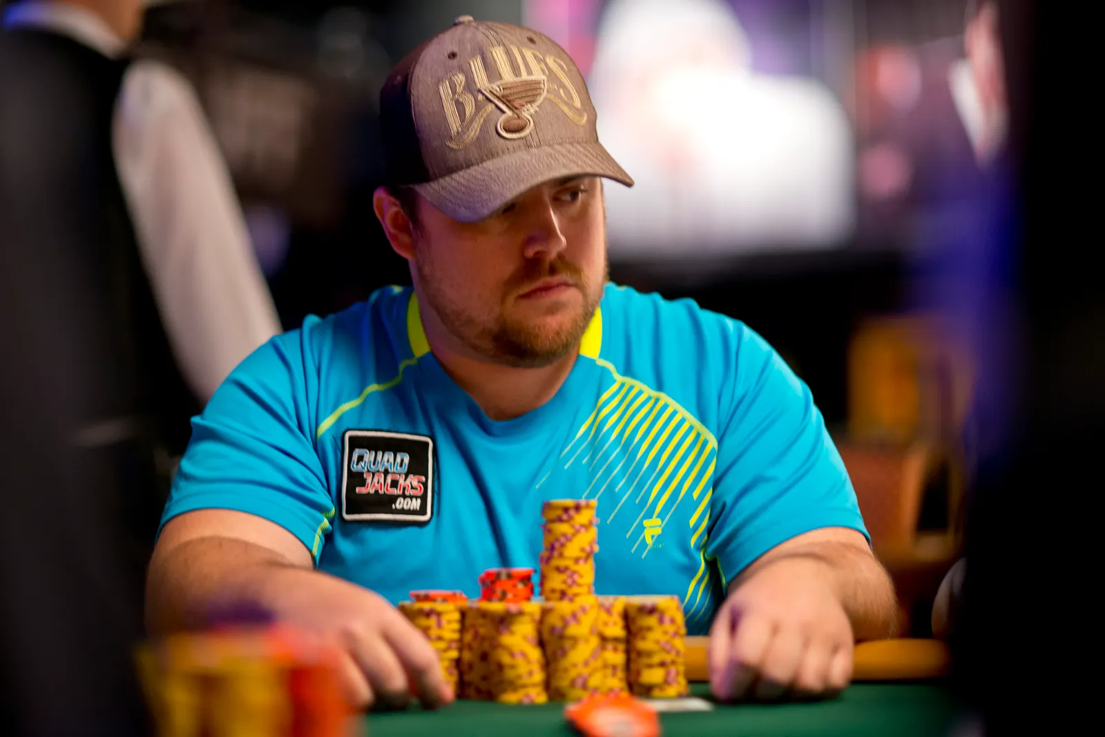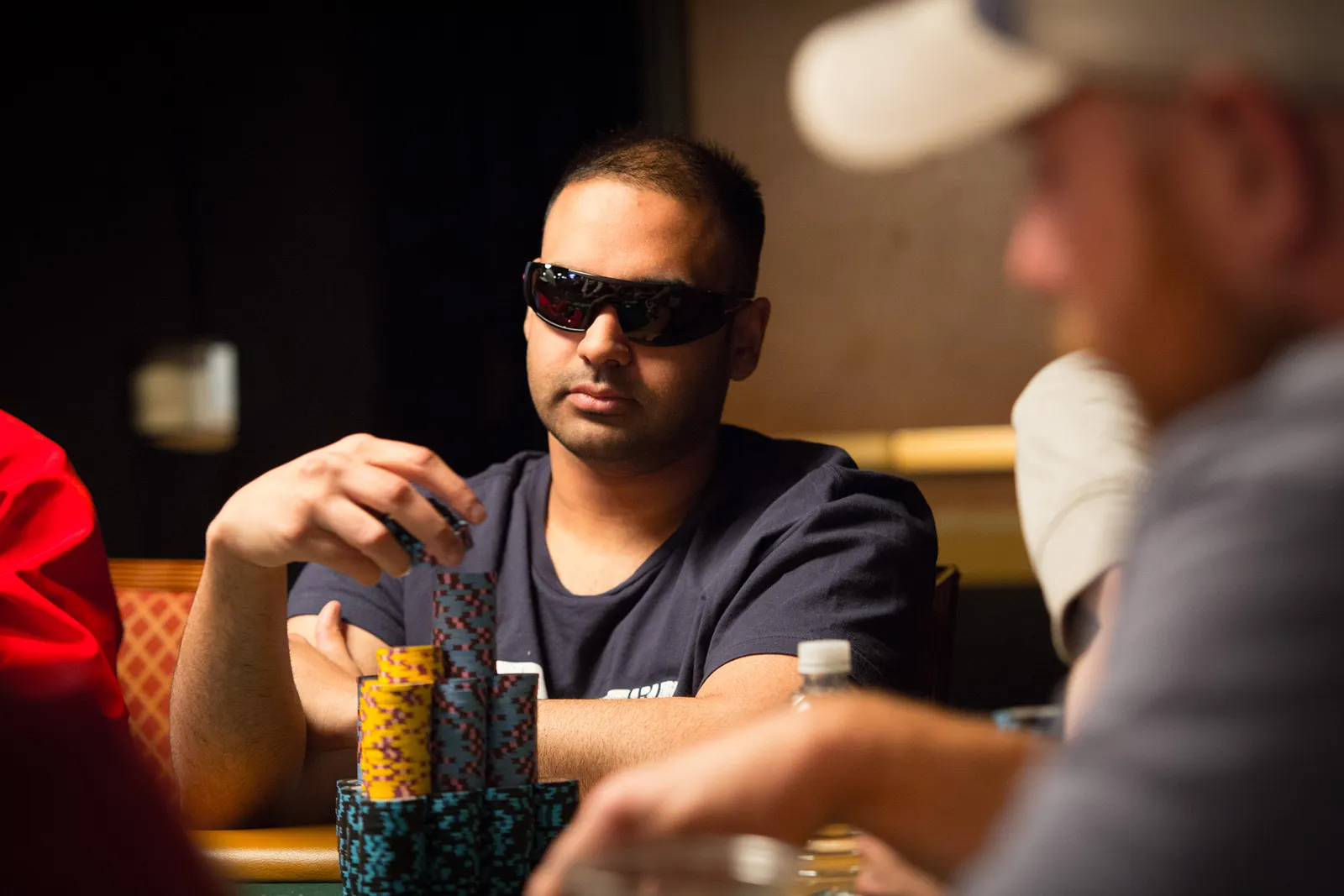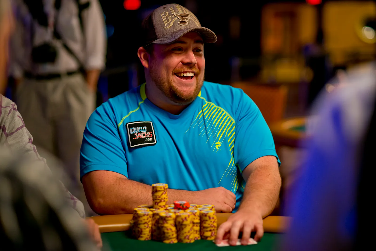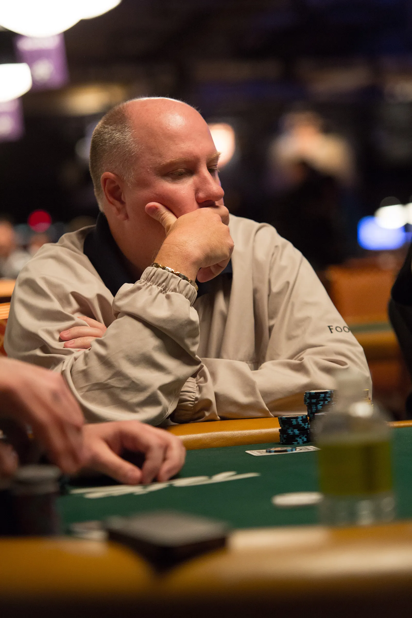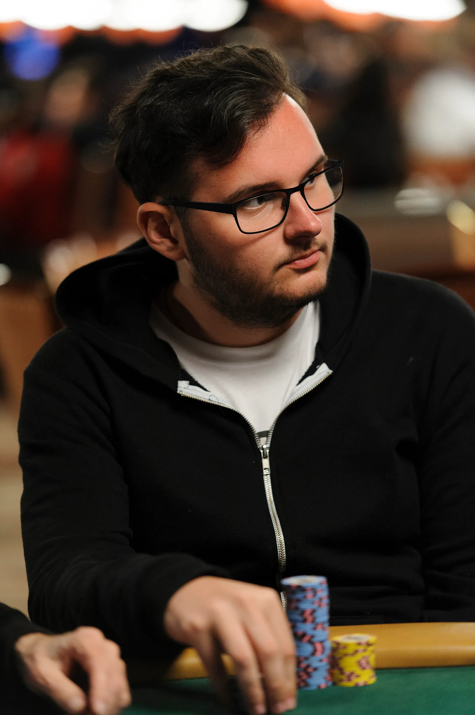 Jason Mercier rushing between two events accidently crushes something belonging to his tablemate